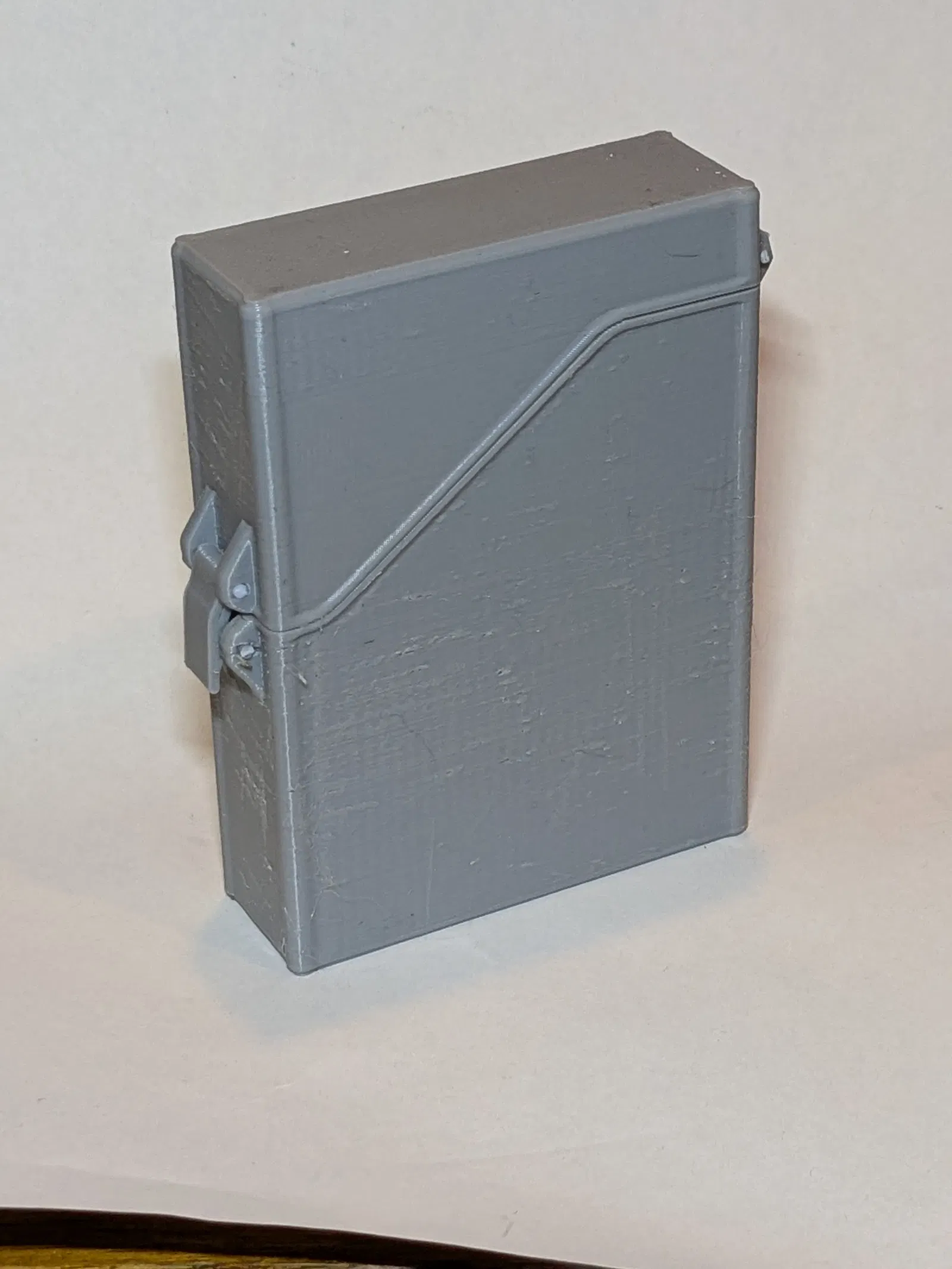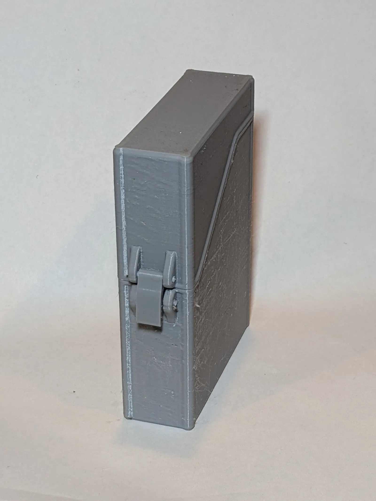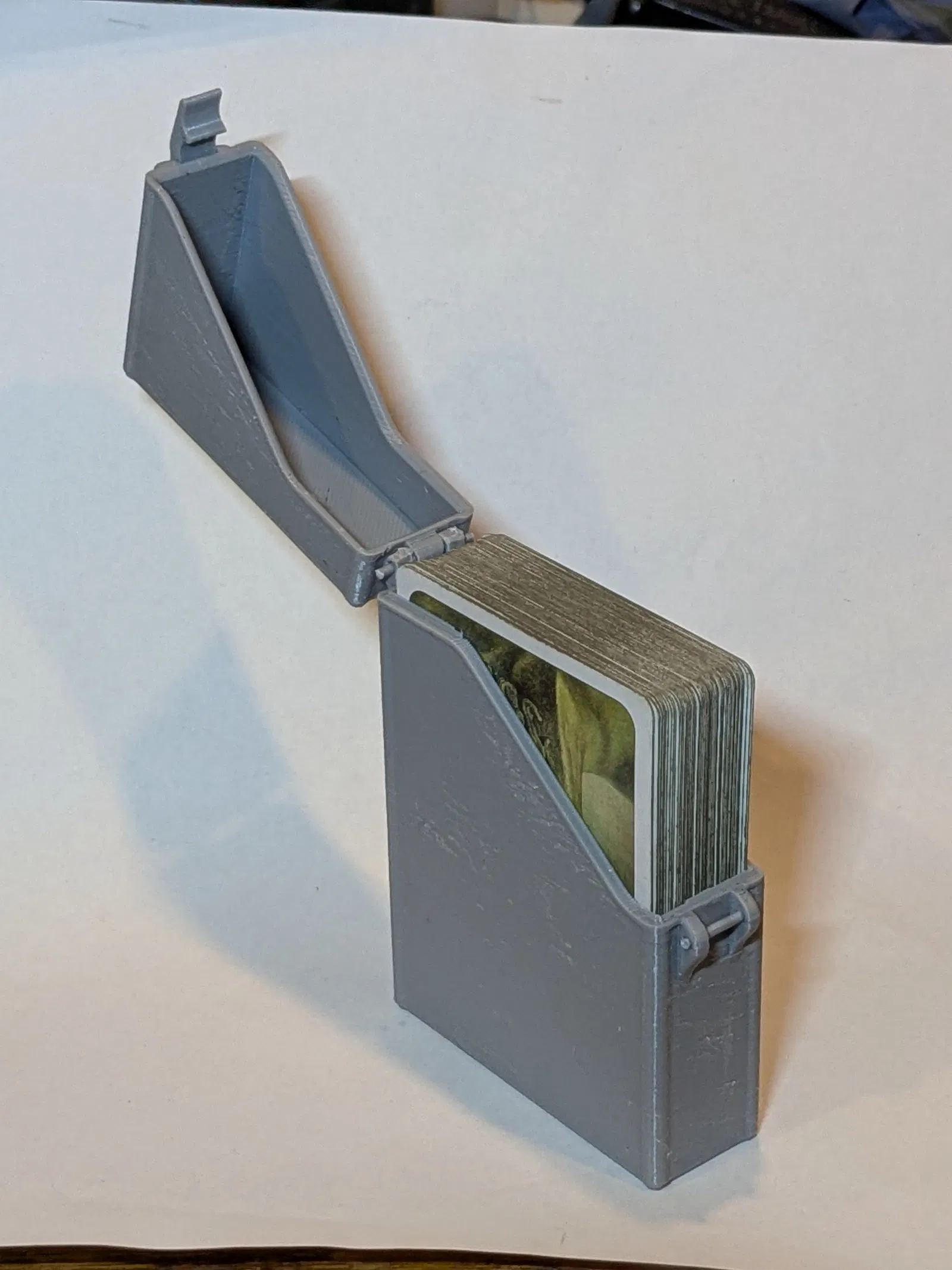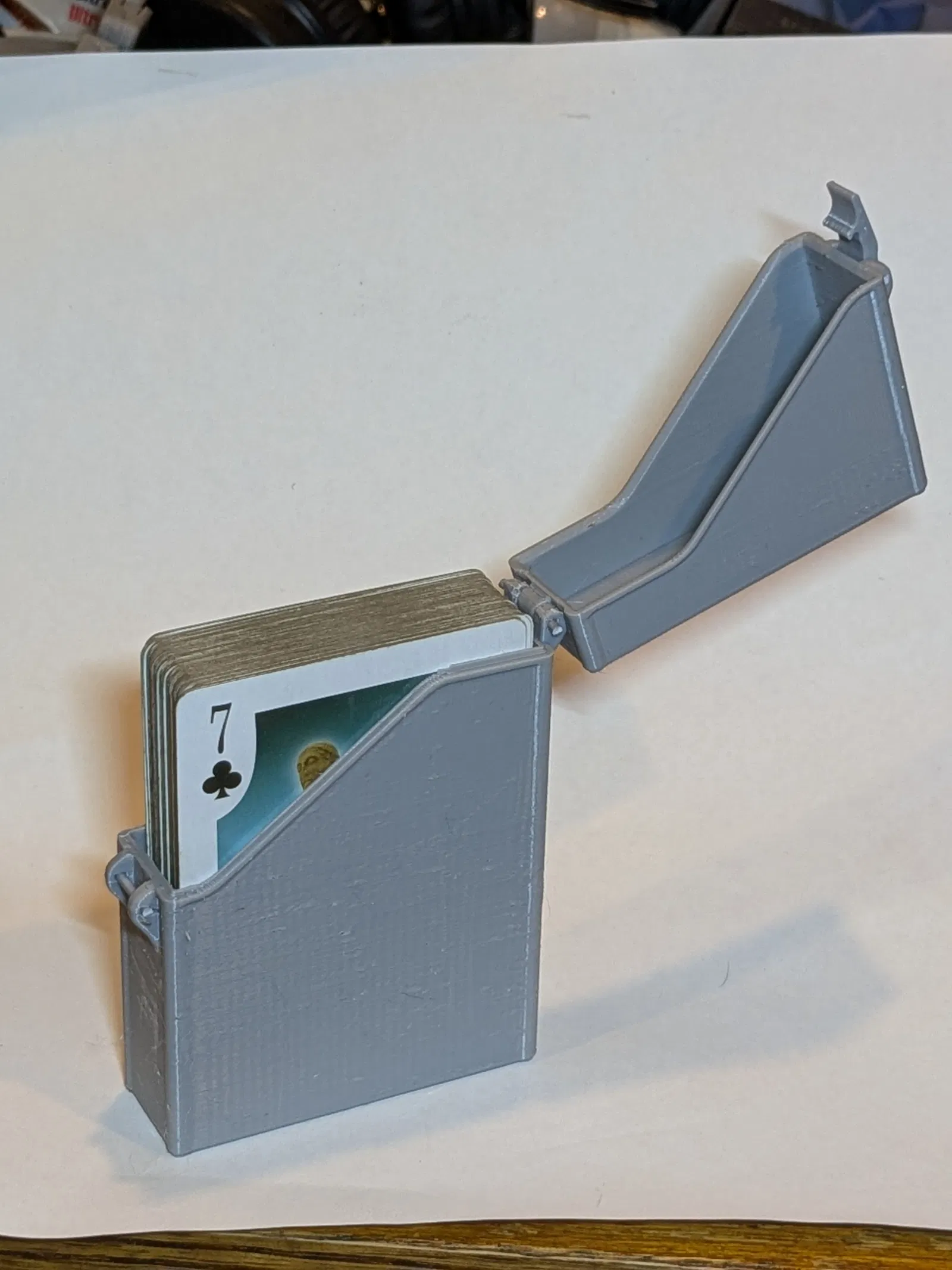 Hộp đựng bài tây nhỏ gọn với snap‑latch cho cảm giác “tách” rất đã. In STL không cần supports, không dùng ốc; chỉ cần vài đoạn filament 1.75mm làm chốt bản lề và ngàm khóa. Có bản in chung 3 phần hoặc tải rời.