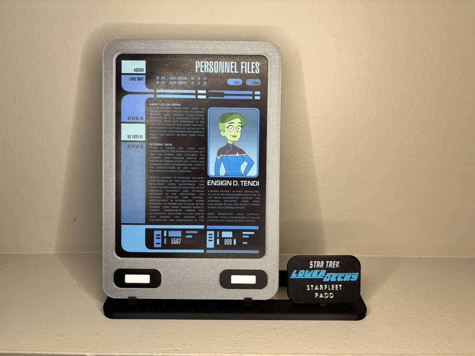 Phiên bản PADD USS Cerritos từ Star Trek: Lower Decks. Thiết kế 3 lớp để làm display slide tháo rời, kèm graphic LCARS. Có cập nhật sửa lớp giữa, connector và bổ sung stand.