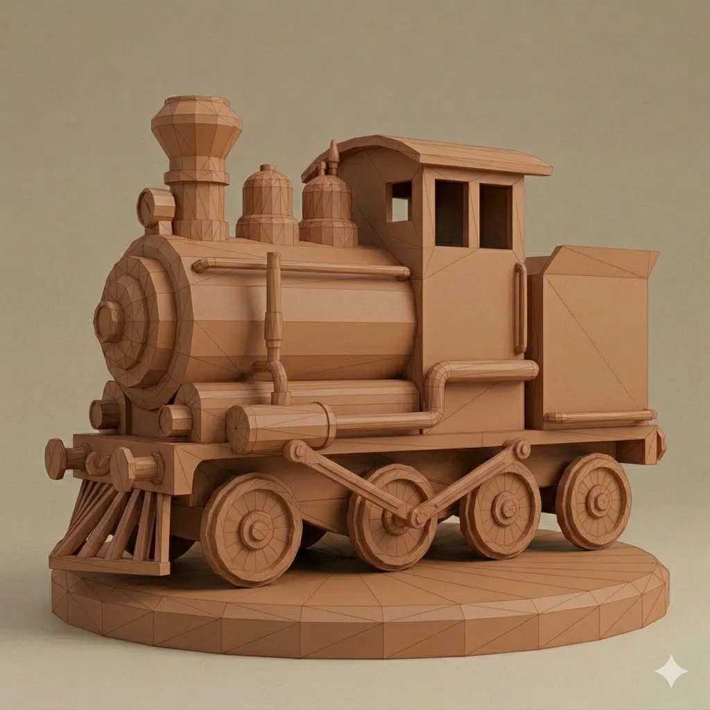 Đầu Máy Xe Lửa Đồ Chơi Low Poly - Mô Hình 3D Trang Trí