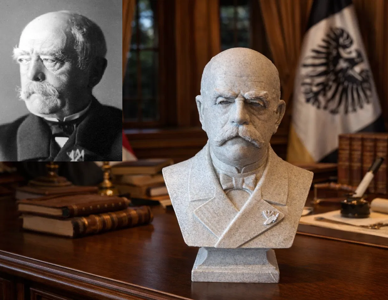 Là một chính khách Phổ thế kỷ 19, Bismarck là kiến trúc sư chủ chốt của tiến trình thống nhất nước Đức. Thông qua ngoại giao thực dụng và một loạt cuộc chiến mang tính chiến lược — chống Đan Mạch, Áo và Pháp — ông thành lập Đế chế Đức năm 1871 dưới quyền Hoàng đế Wilhelm I. Được mệnh danh là “Thủ tướng Sắt”, sau đó ông xây dựng một hệ thống liên minh phức tạp nhằm duy trì thế cân bằng châu Âu và ngăn ngừa một cuộc xung đột trên diện rộng. Chính sách đối nội của ông cũng để lại dấu ấn lâu dài với việc đưa vào các hệ thống bảo hiểm xã hội hiện đại đầu tiên.
