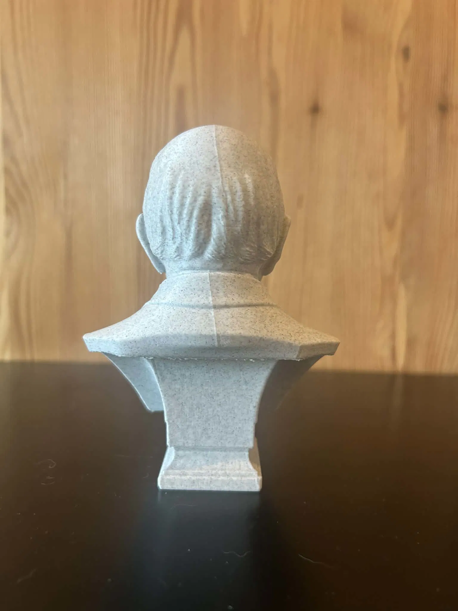 Khối hình gương mặt được nhấn mạnh rõ rệt: vầng trán rộng, mí mắt nặng và bộ ria mép nổi bật trứ danh giúp nhận diện ngay lập tức. Các đường nét không hề được lý tưởng hóa; những bất đối xứng tự nhiên và dấu vết tuổi tác được giữ lại để đảm bảo độ giống sát với nhân vật lịch sử.