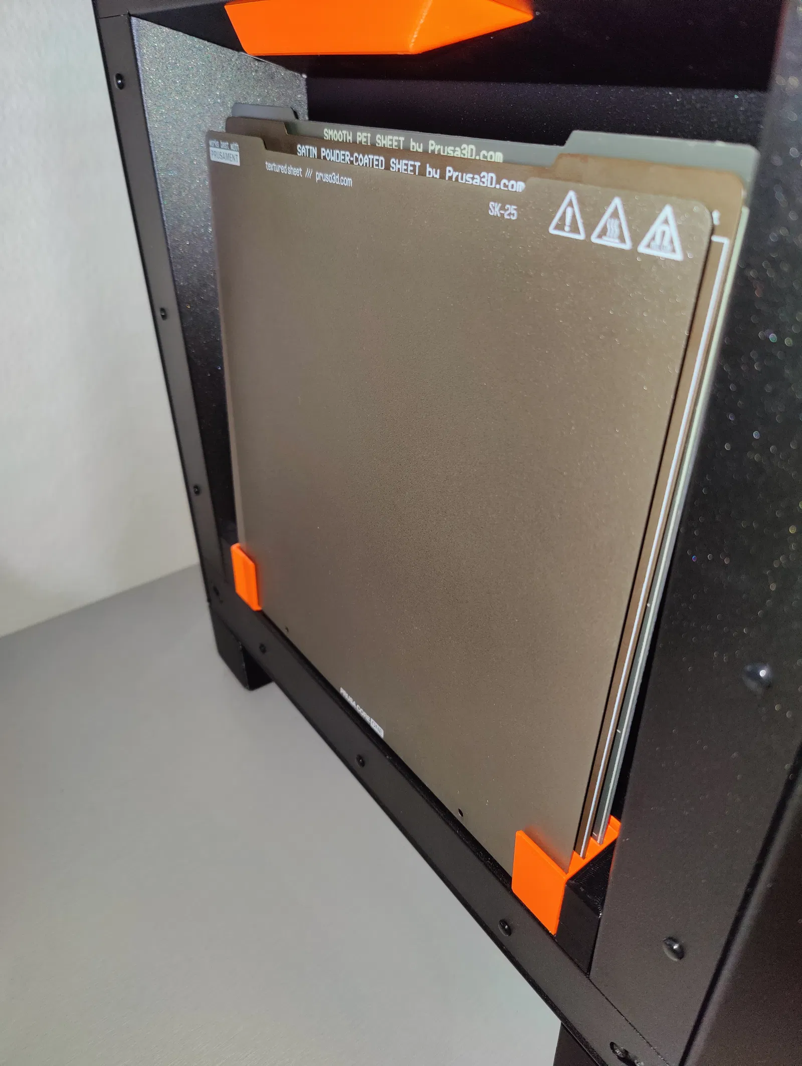 Một giá đỡ print sheet dạng nghiêng dành cho ngăn (pocket) ở tấm panel bên trái của Prusa CORE One. Thiết kế dựa trên mẫu rất thực tế của Girak.