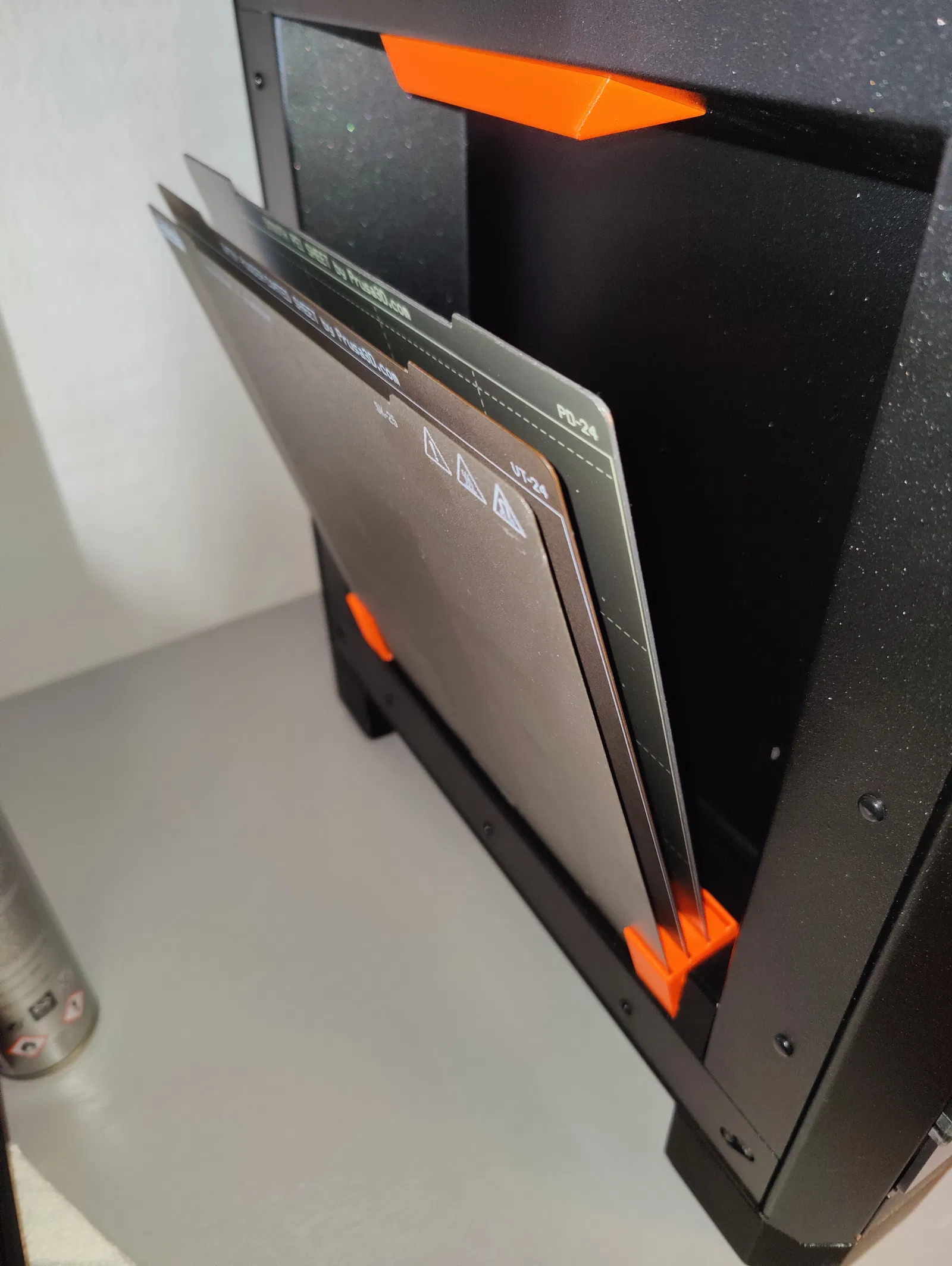 Đựng được 4 tấm print sheet. Các chi tiết được thiết kế để giữ bằng nam châm: nam châm để cố định phần đế vào vị trí và mỗi chi tiết bản lề (pivoting piece) có một nam châm để giữ nó ép xuống (và giữ các tấm sheet dựng lên).
