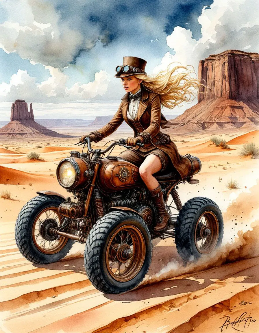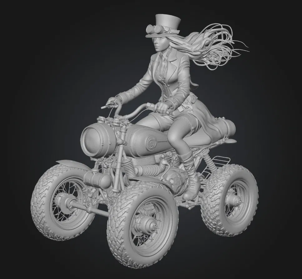Chào mừng anh em đến với thế giới của những cỗ máy hơi nước và phong cách viễn tưởng độc đáo! Hôm nay, chúng ta sẽ cùng khám phá mô hình 3D "Dusbound Dynamo" – một tác phẩm nghệ thuật tái hiện hình ảnh một cô nàng cưỡi "xe" trong thế giới steampunk đầy cuốn hút. Hình ảnh cô gái mạnh mẽ, cá tính ngồi trên chiếc "xe" bốn bánh độc đáo, với mái tóc tung bay trong gió và trang phục đậm chất steampunk, chắc chắn sẽ làm bạn mê mẩn ngay từ cái nhìn đầu tiên.