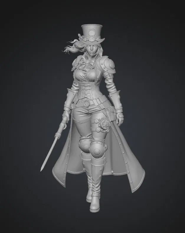 Chào mừng quý vị đến với thế giới mô hình 3D độc đáo! Hôm nay, chúng tôi xin giới thiệu "Nữ Cướp Biển Máy" (Clockwork Corsair), một tác phẩm điêu khắc đầy ấn tượng, tái hiện hình ảnh một nữ chiến binh mạnh mẽ, quyến rũ theo phong cách Steampunk.