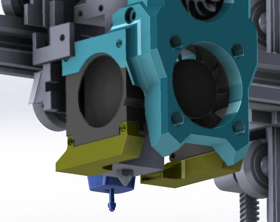 - Tăng cường làm mát: Hai quạt 4010 thổi khí trực tiếp vào đầu in, giúp làm nguội nhựa nhanh chóng, cải thiện chất lượng chi tiết.