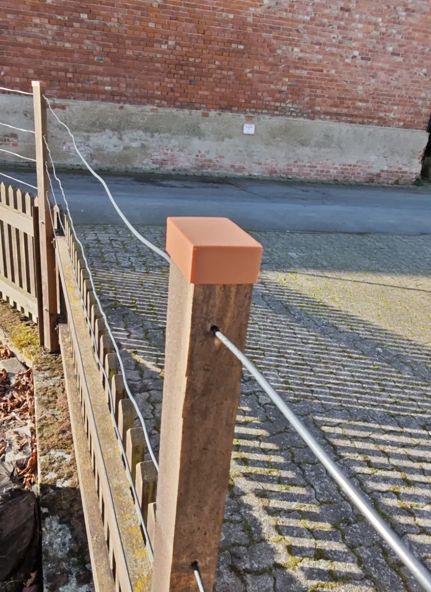 This post cap is custom-made for rectangular posts with the standard dimensions of 30 x 50 mm.