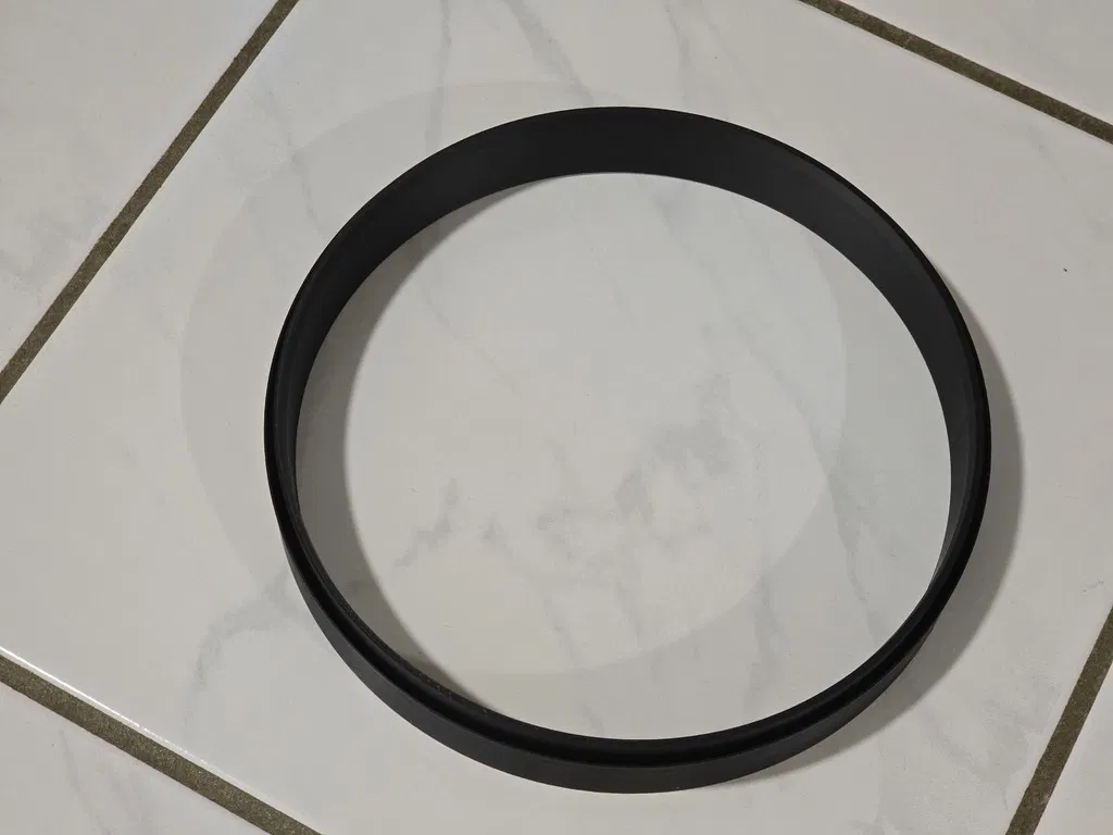 1. Đặt vòng trong lên mặt phẳng, để phần cạnh vát (bevelled edge) quay xuống dưới (cạnh vát giúp canh vị trí khi gắn vào dew shield)