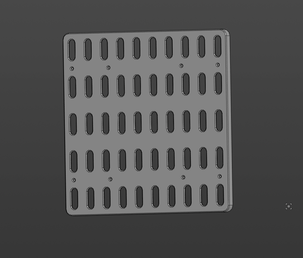 Chiếc giá treo này có cấu trúc gồm nhiều khe hình chữ nhật và các lỗ tròn nhỏ. Các khe này đủ rộng để anh em có thể luồn các vật dụng có chiều ngang nhất định vào, còn các lỗ nhỏ thì có thể dùng để móc treo hoặc cố định thêm các chi tiết nhỏ khác. Khả năng tùy biến là điểm cộng lớn nhất, anh em hoàn toàn có thể in nhiều cái để ghép lại, tạo thành một mảng lưu trữ lớn theo nhu cầu.