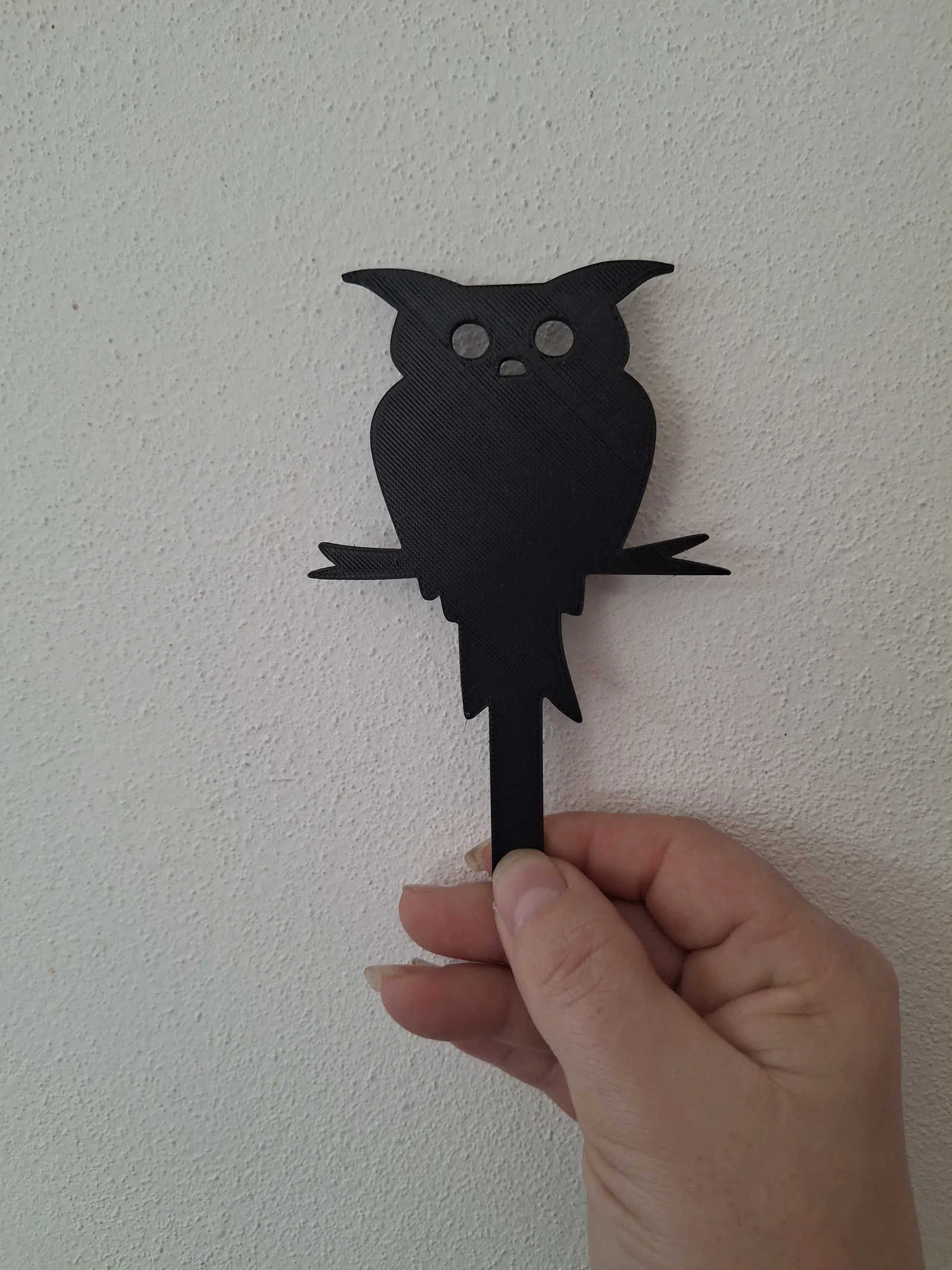 Mẫu “Halloween 18” là siluet con cú màu đen đậu trên cành, in bằng BasicPLA. Có que cắm tiện để trang trí chậu cây, vòng hoa hoặc set decor mùa thu/Halloween. In nhanh 46 phút, nhẹ và chắc, dùng trong nhà.