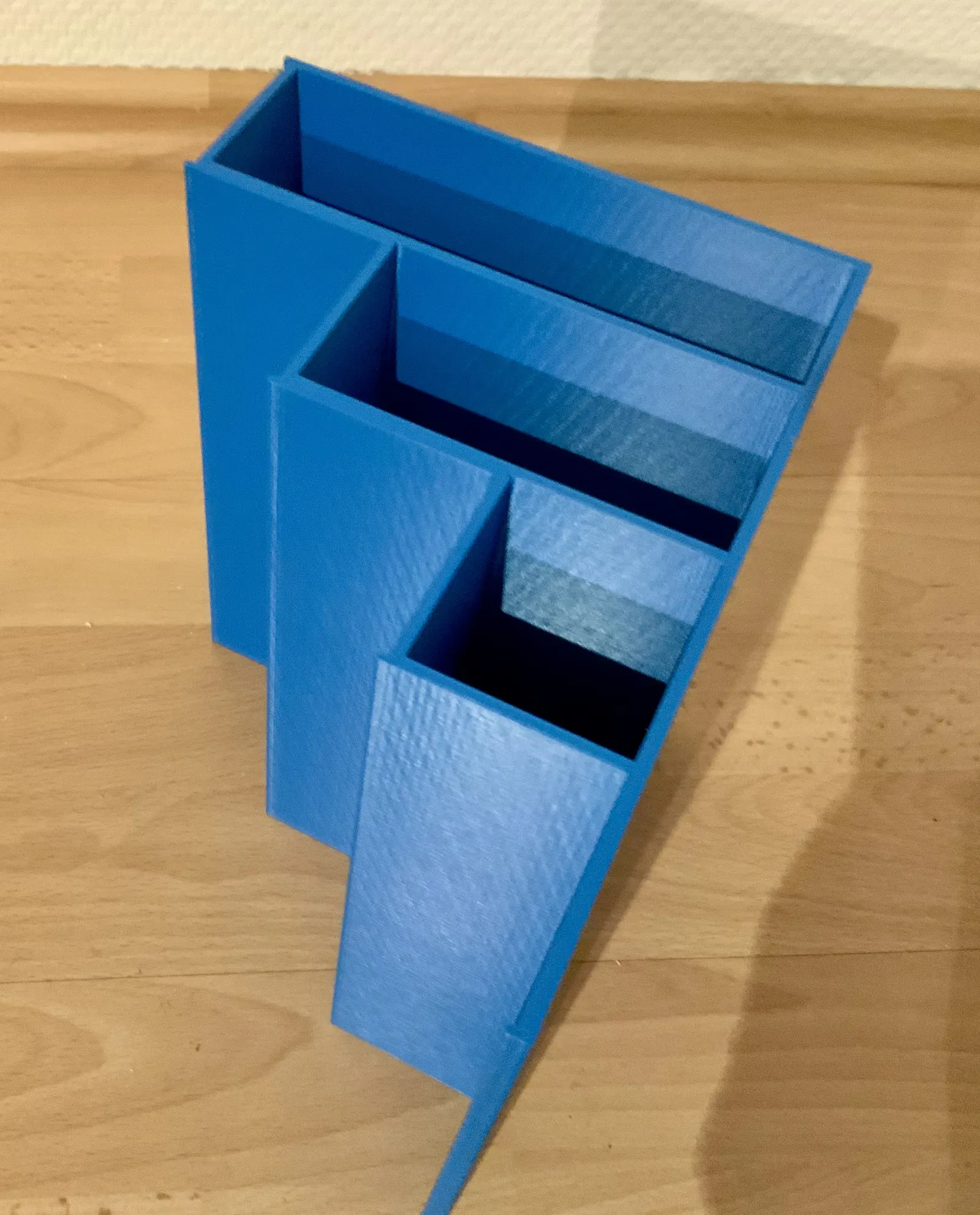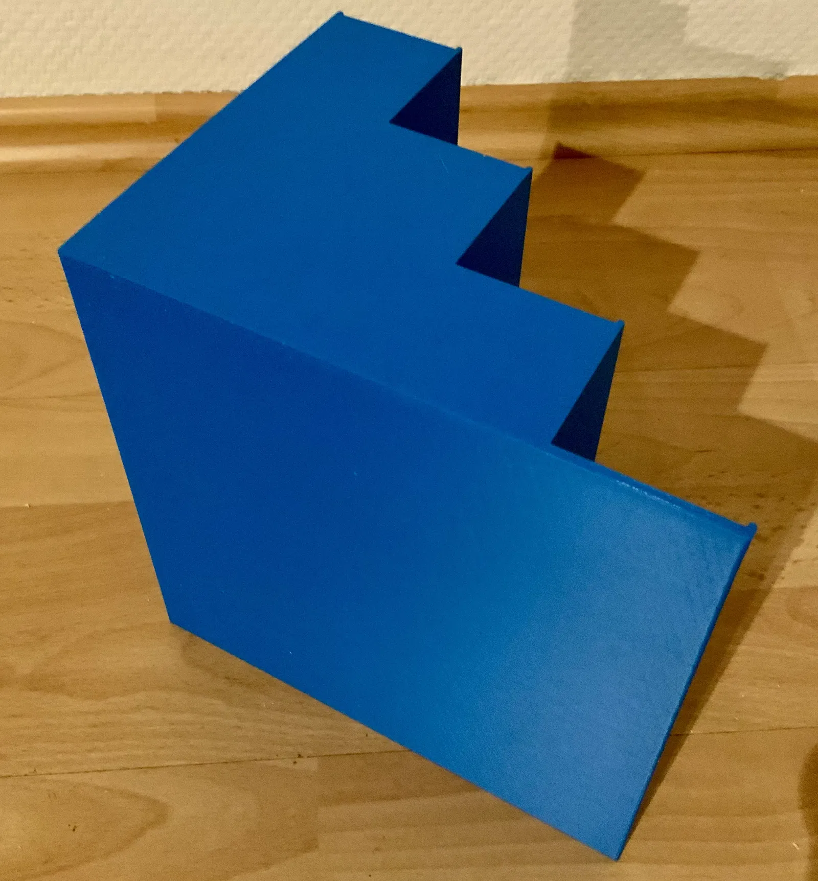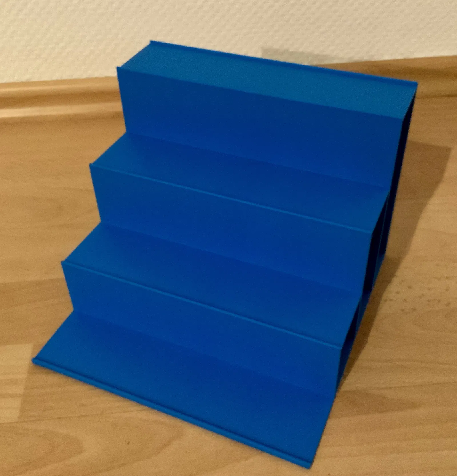 Kệ trưng bày dạng bậc thang cho model tàu/xe lửa tỉ lệ H0, TT và N. Phù hợp để đặt trong tủ kính hoặc làm chỗ đậu rolling stock. In PLA, kích thước 195×200×150, layer 0,3 mm.