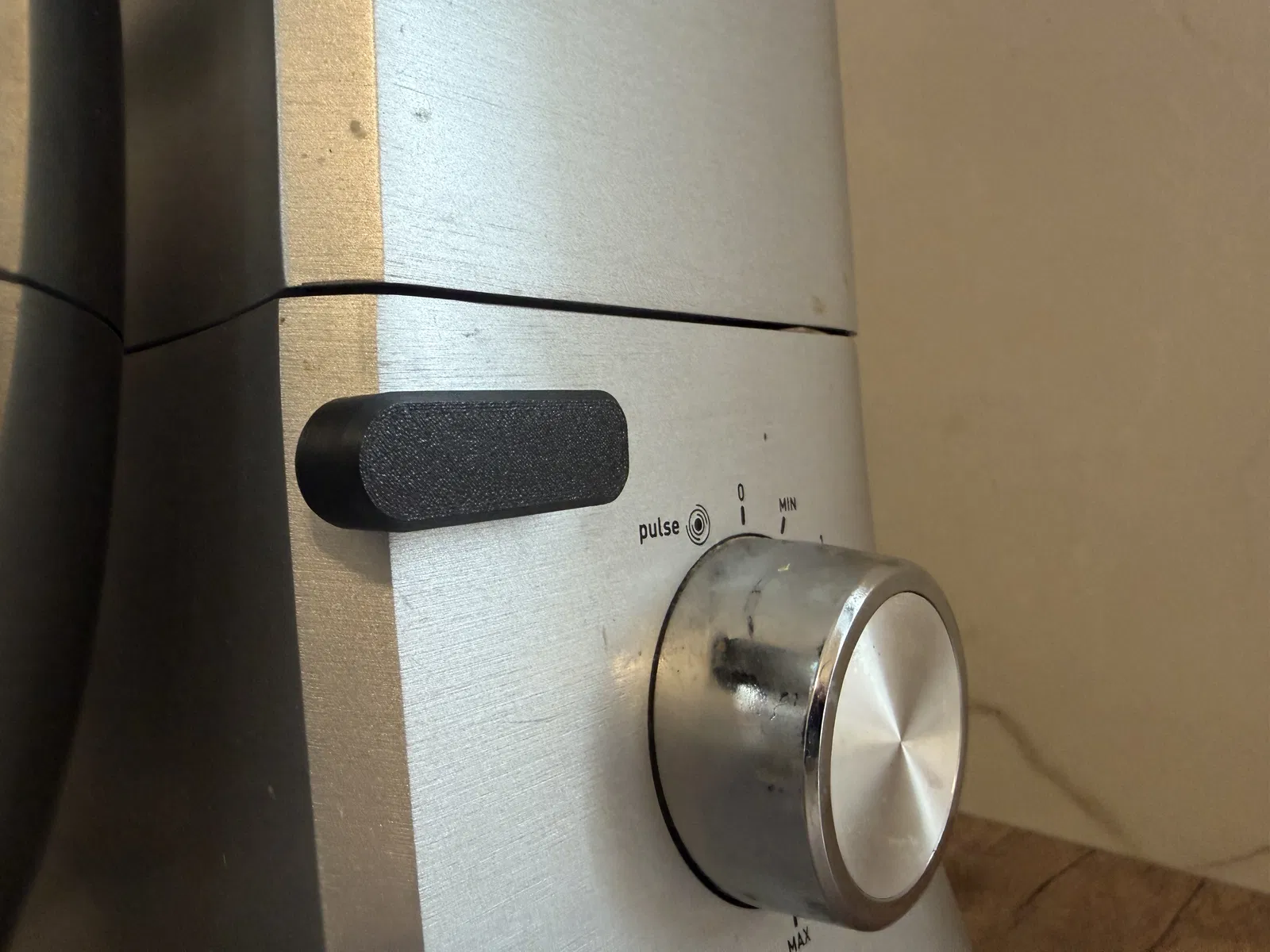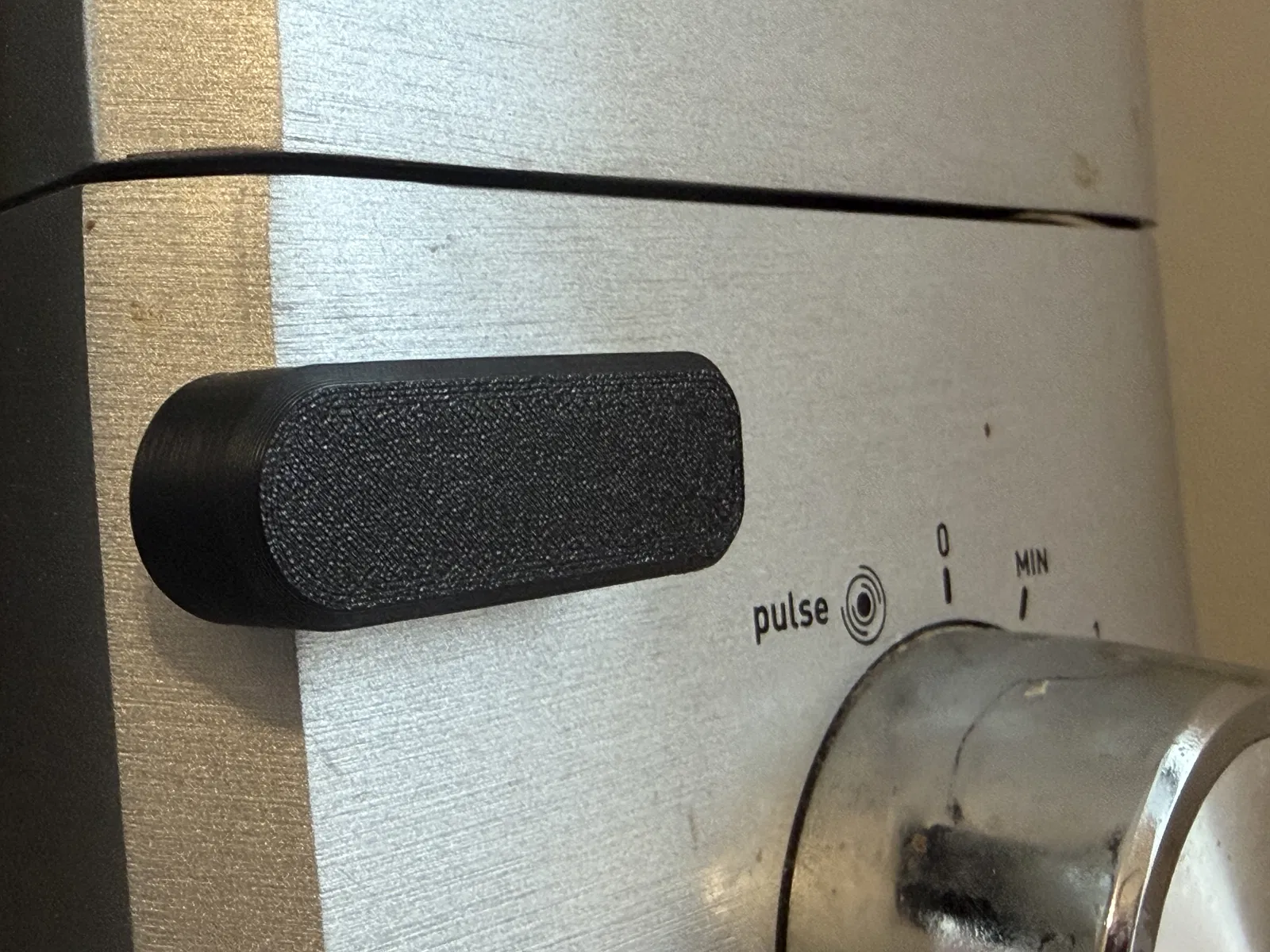 Chi tiết tay gạt “open” thay thế dạng lắp vừa (drop-in) cho máy xay thực phẩm Tefal Masterchef Grande khi bị gãy. Thiết kế trượt khít lên trục mở; gợi ý in PLA, layer 0.1, infill cubic 20%, 3 walls.