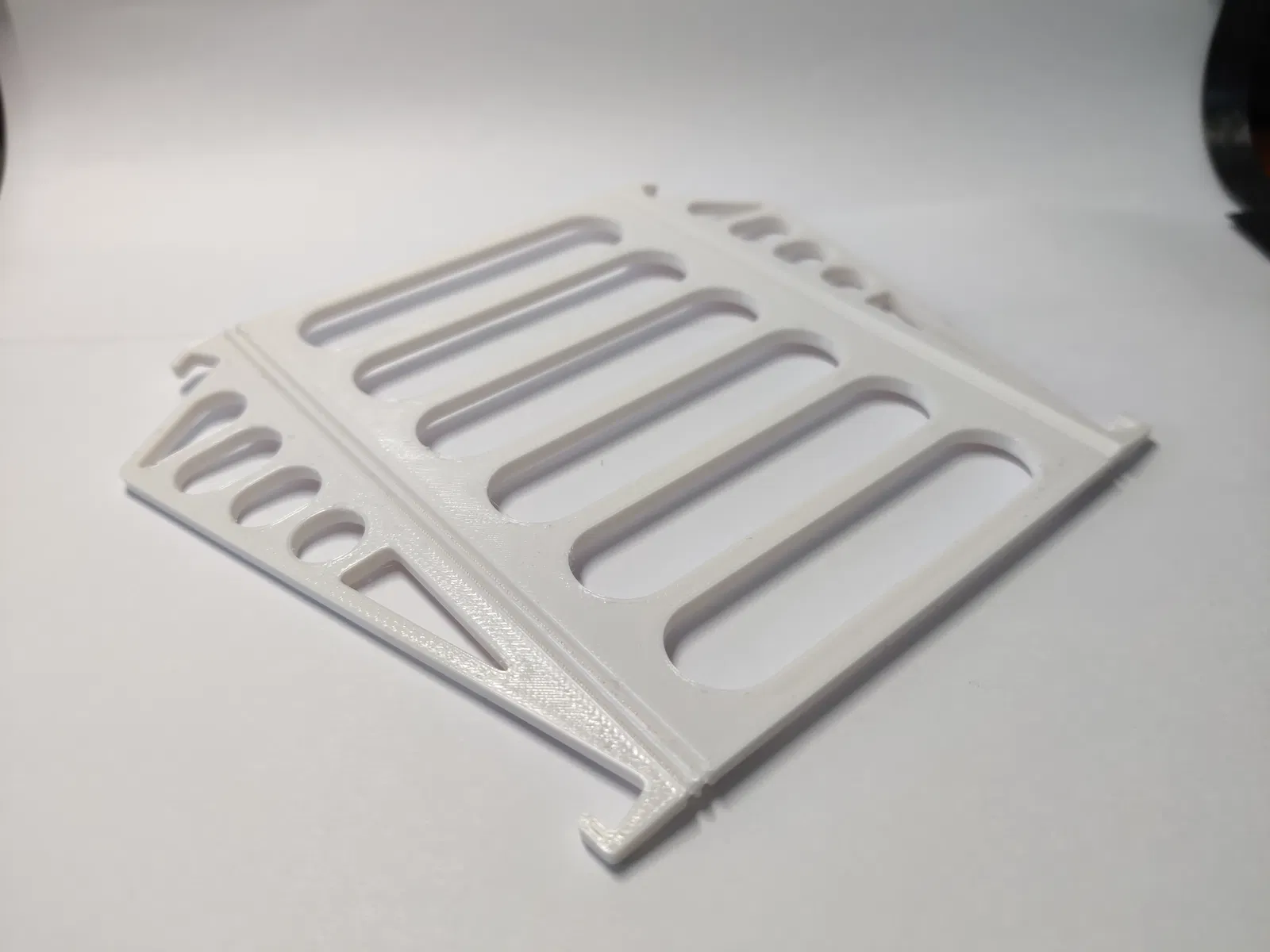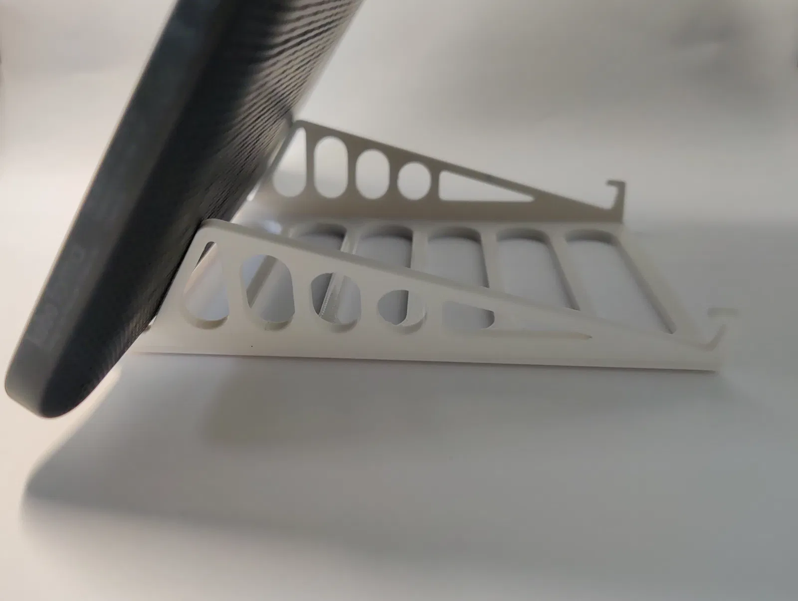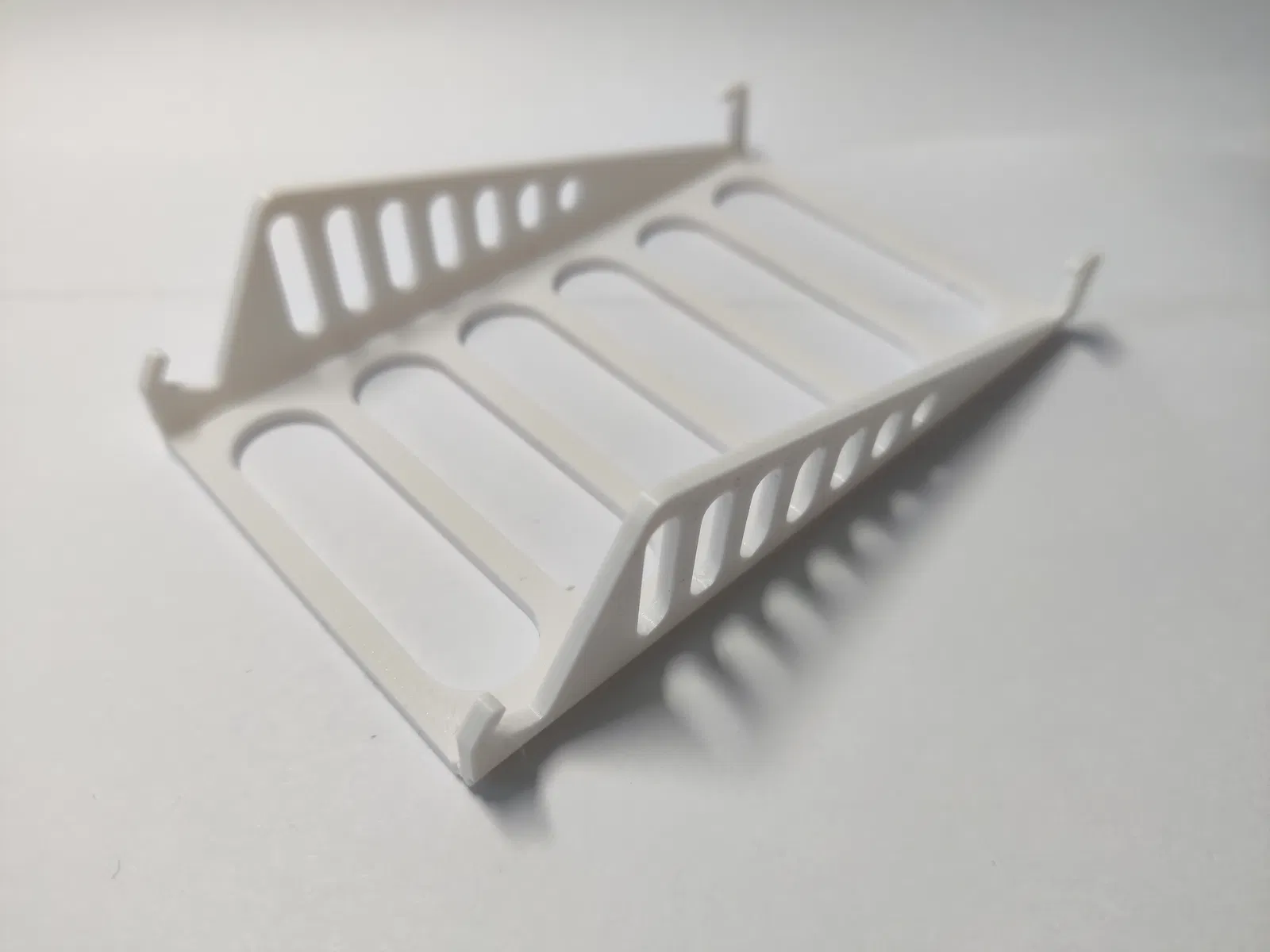 Với bản giá đỡ gập, bạn in để nằm phẳng, nhưng lúc slicing nhớ kiểm tra phần hinges chỉ có 3 layers. Model có mặt trên và mặt dưới; nếu sau khi slice thấy hinges thành 4 layers thì thử flip model.