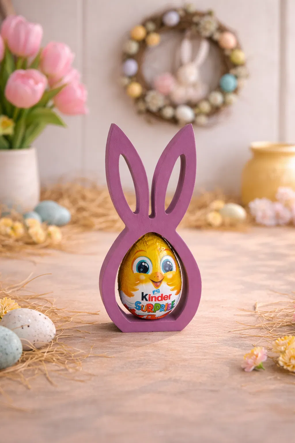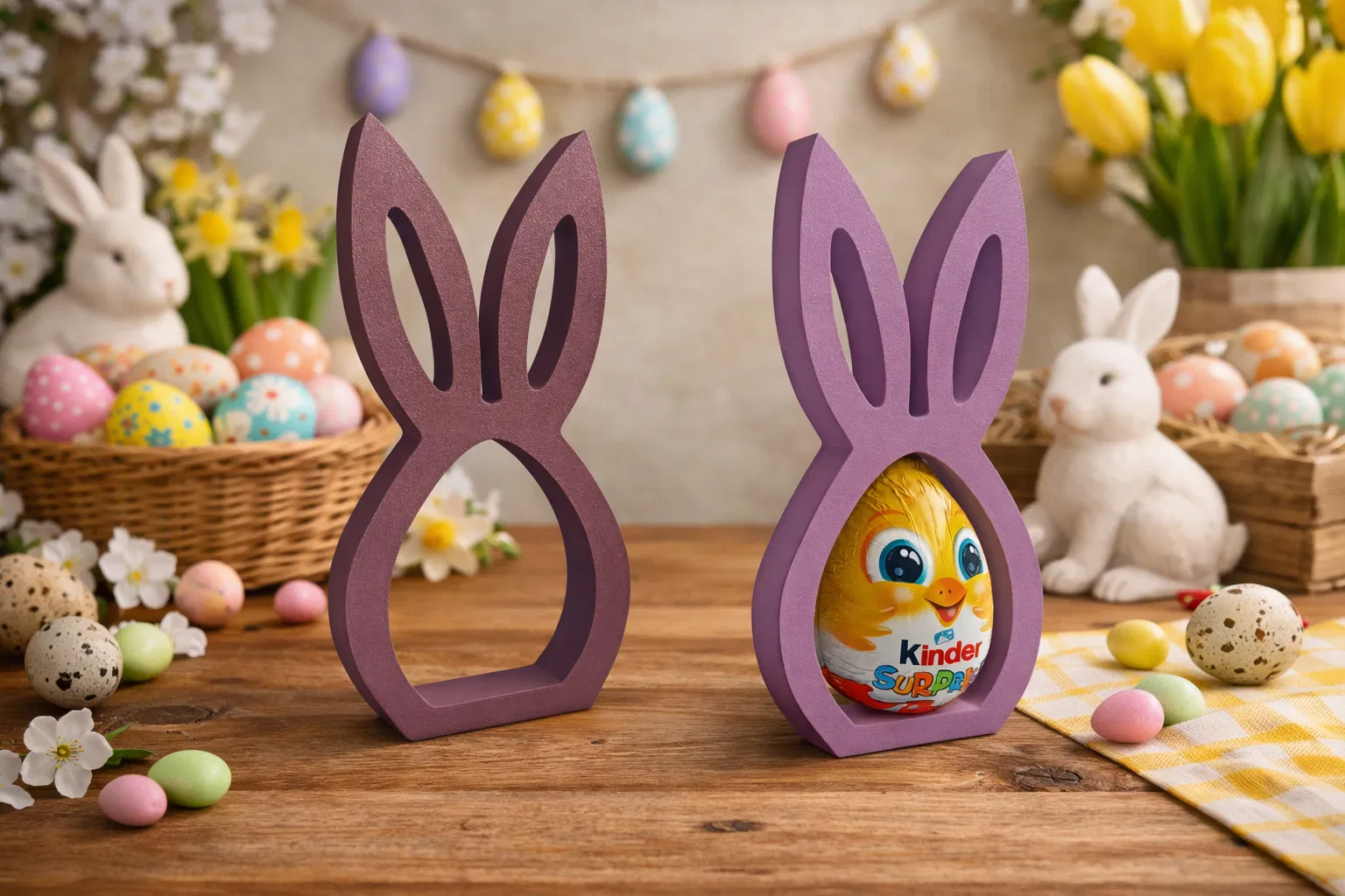 Mẫu thỏ Phục Sinh trang trí nhà đơn giản mà đẹp. Bạn có thể đặt một quả trứng vào bên trong (kể cả Kinderegg) để góc nhà trông ấm cúng hơn. Nhớ kiểm tra kích thước trứng trước khi in.