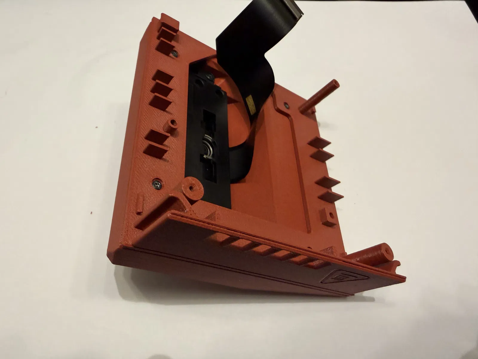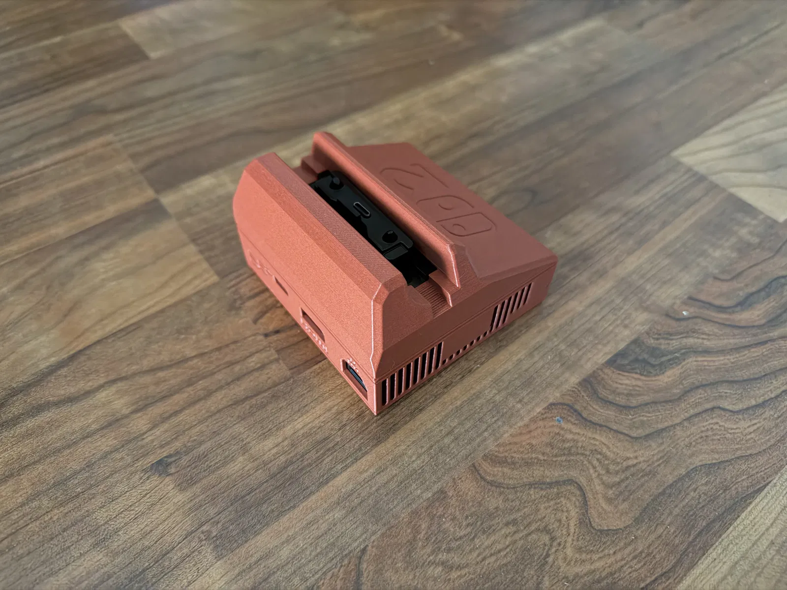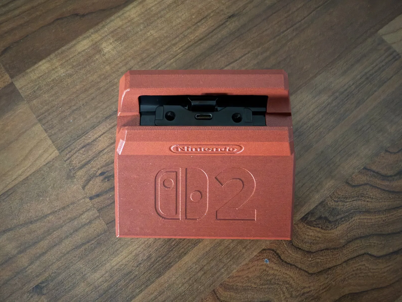 Mẫu dock Switch 2 gọn hơn để mang theo, dùng lại toàn bộ hardware zin từ dock donor. USB ports hướng ra trước cho dễ dùng, giữ cơ cấu lò xo và Status-LED. Khuyến nghị in 0.16 mm với PETG-CF.