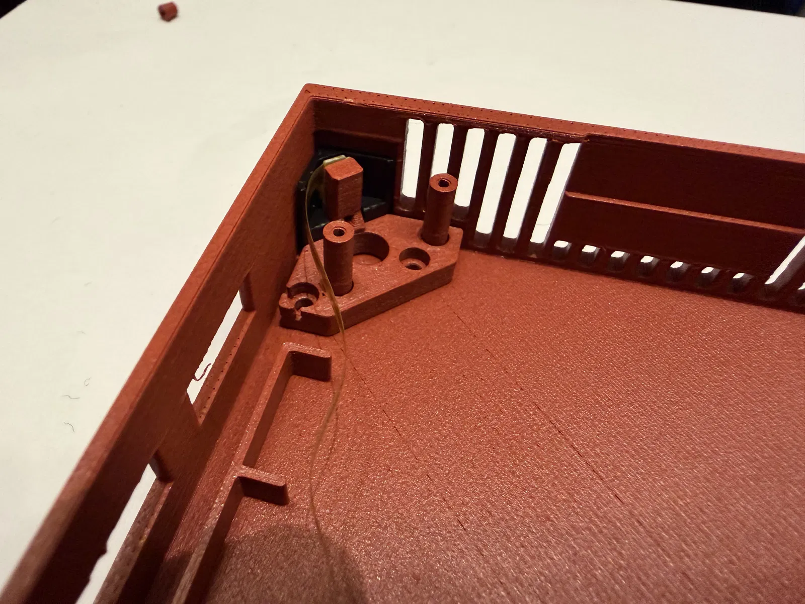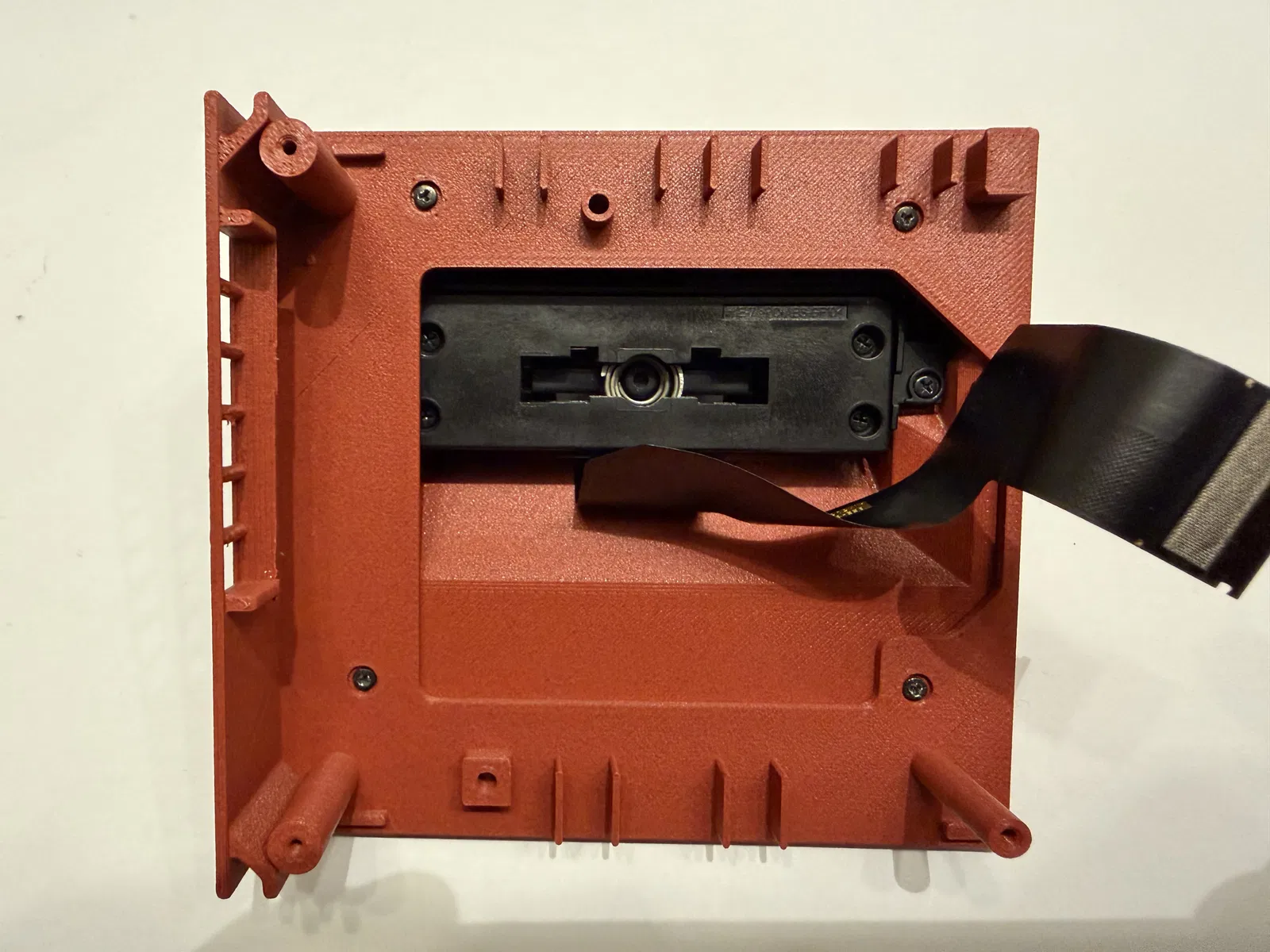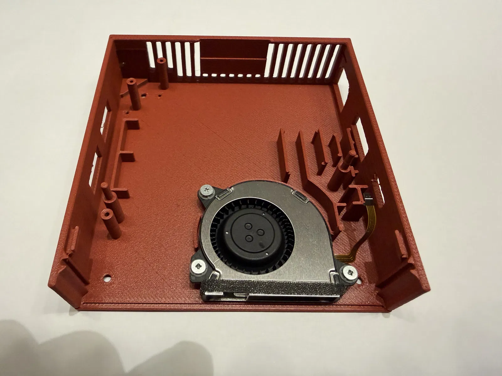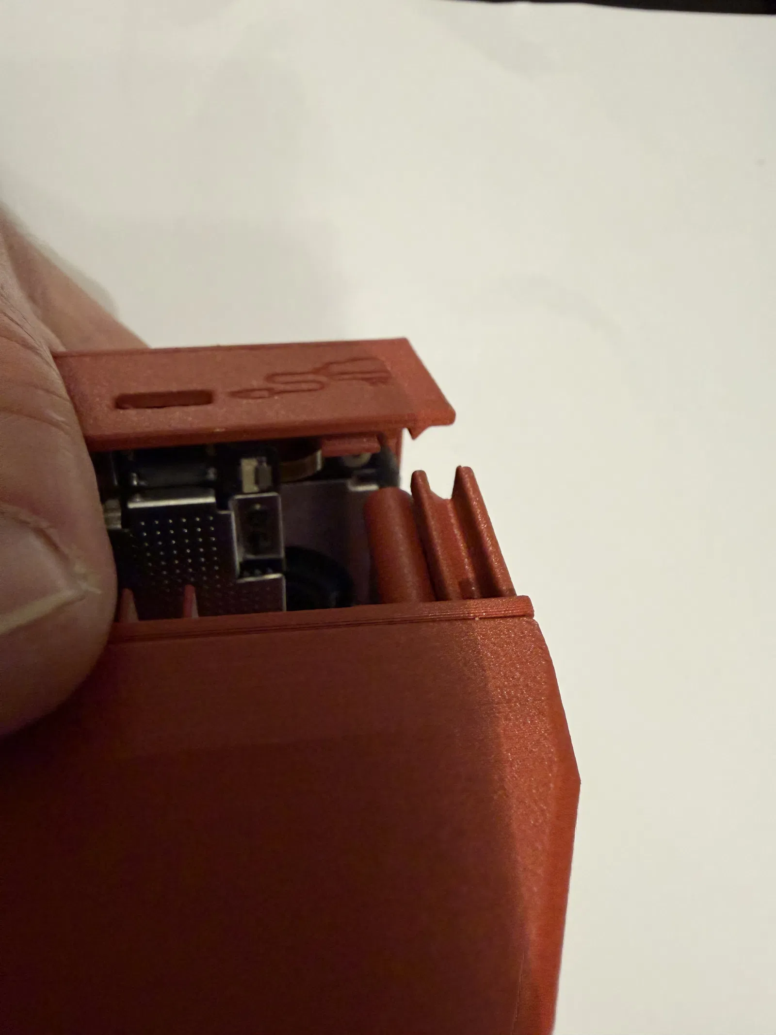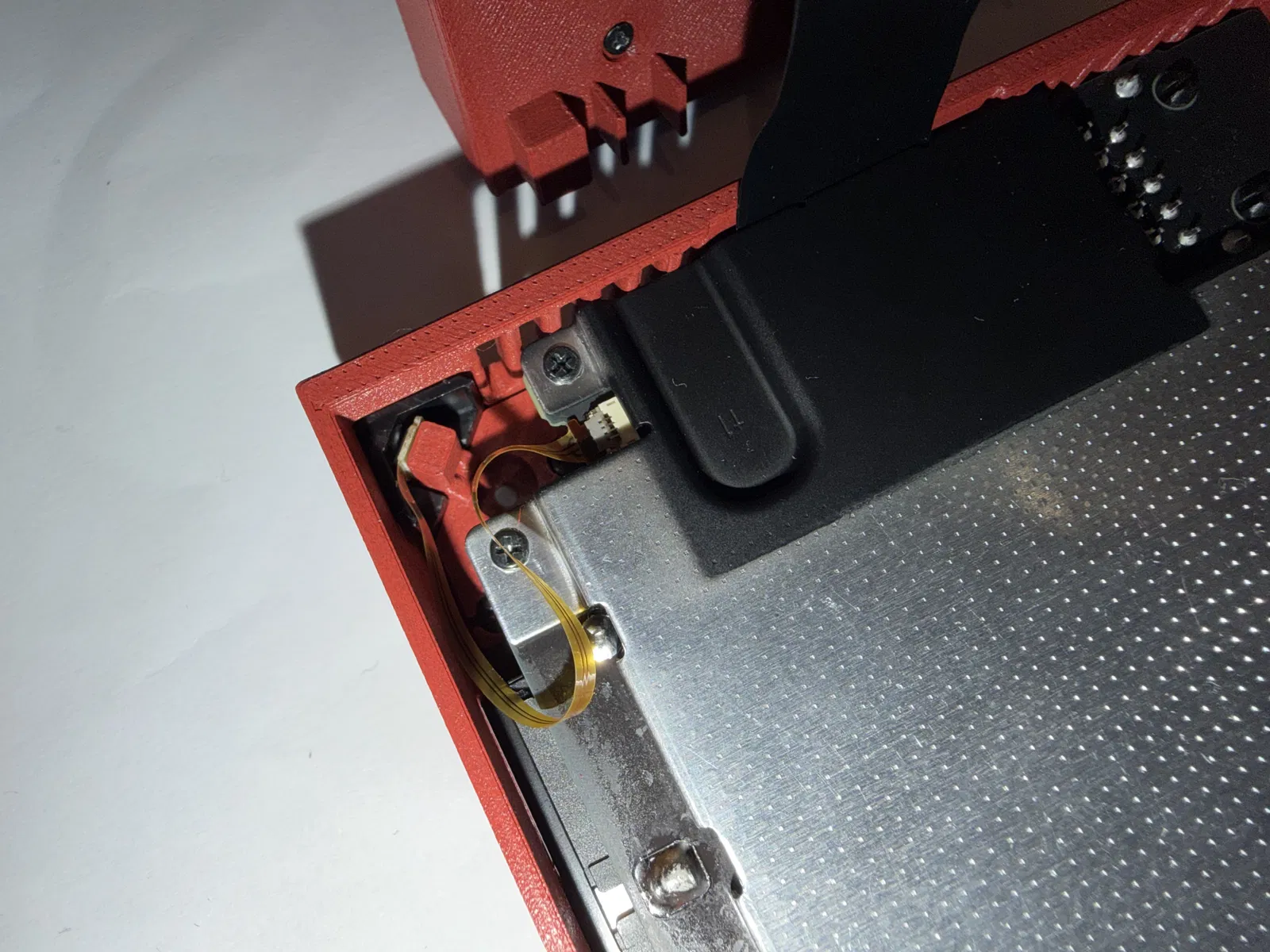 Một góc có snap fit vì đầu nối mạng (network connector) không chừa chỗ cho thêm ốc. Với mình thì bấm khớp góc đó trước là dễ nhất. -
