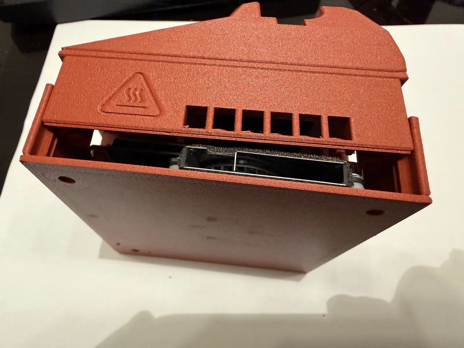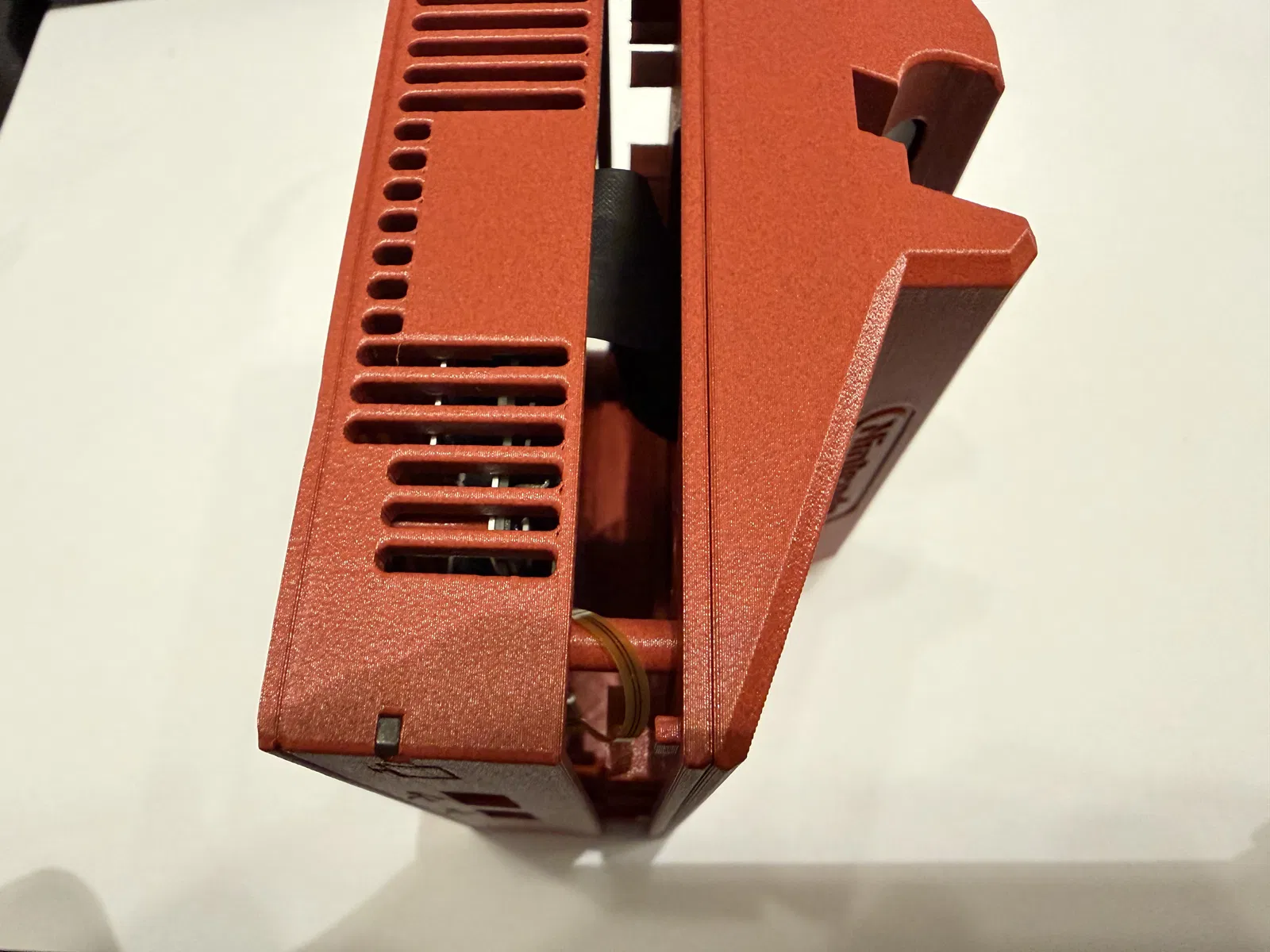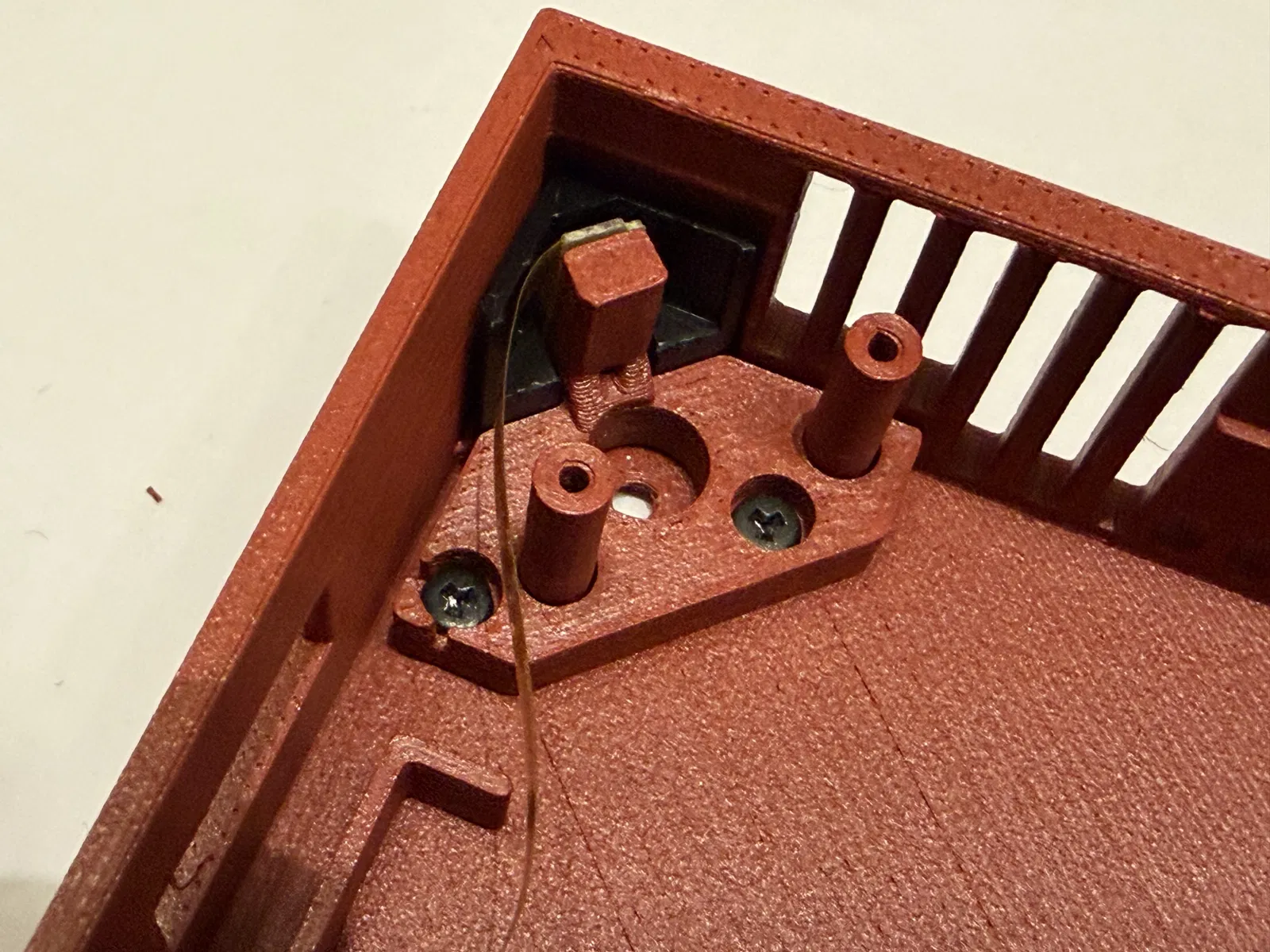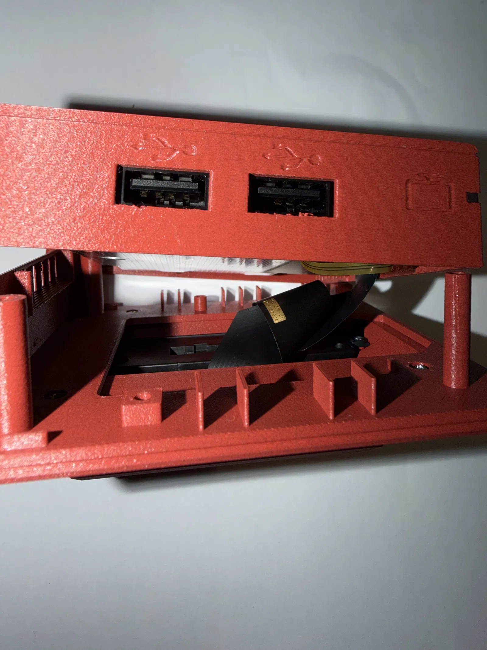 Một góc có snap fit vì đầu nối mạng (network connector) không chừa chỗ cho thêm ốc. Với mình thì bấm khớp góc đó trước là dễ nhất. -