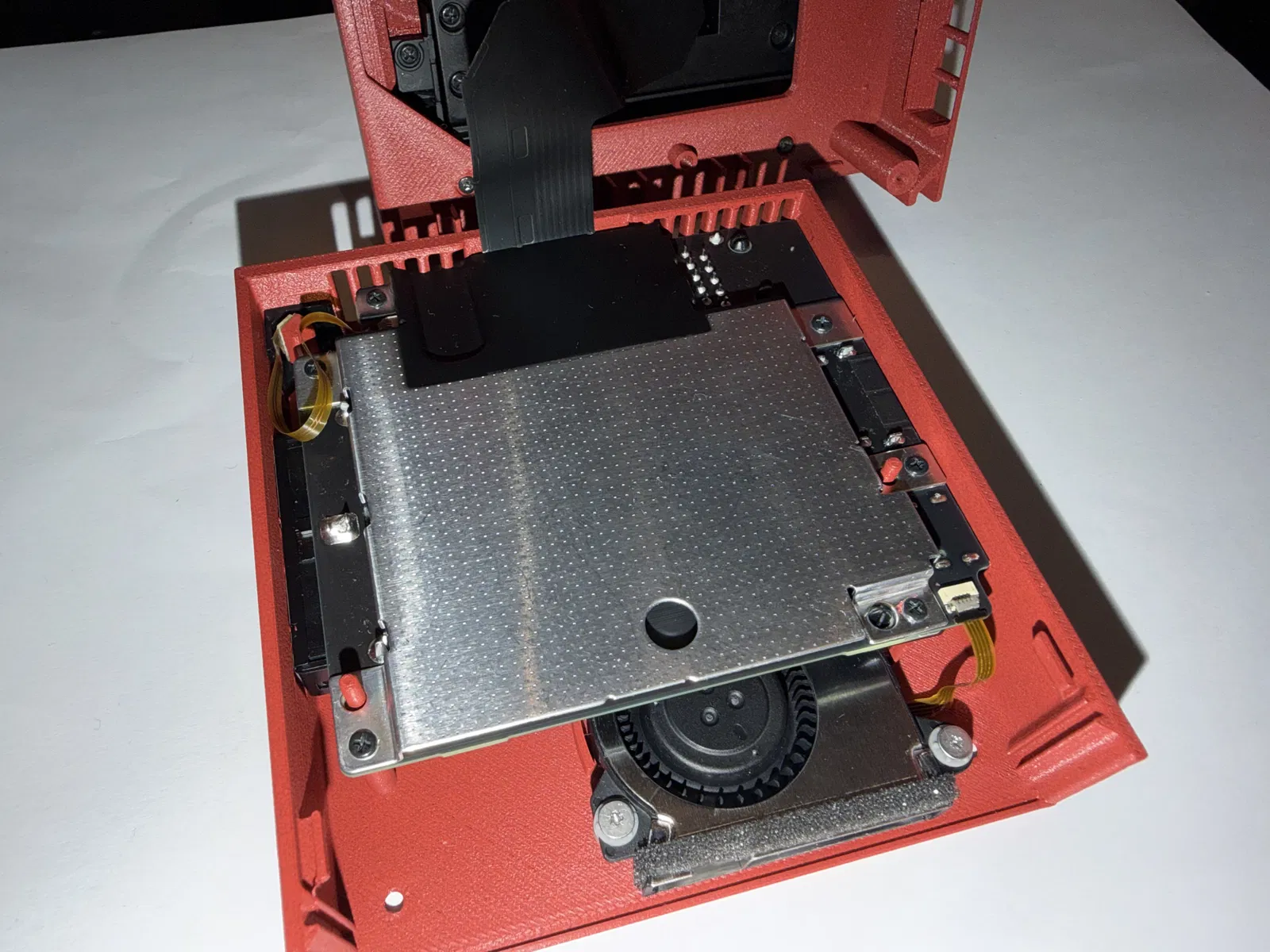 Chú ý đừng làm hư bất kỳ ribbon cable nào (đặc biệt là sợi nhỏ cho LED và quạt). Khi lắp cũng nhớ canh đừng để chúng bị kẹt giữa các chi tiết.