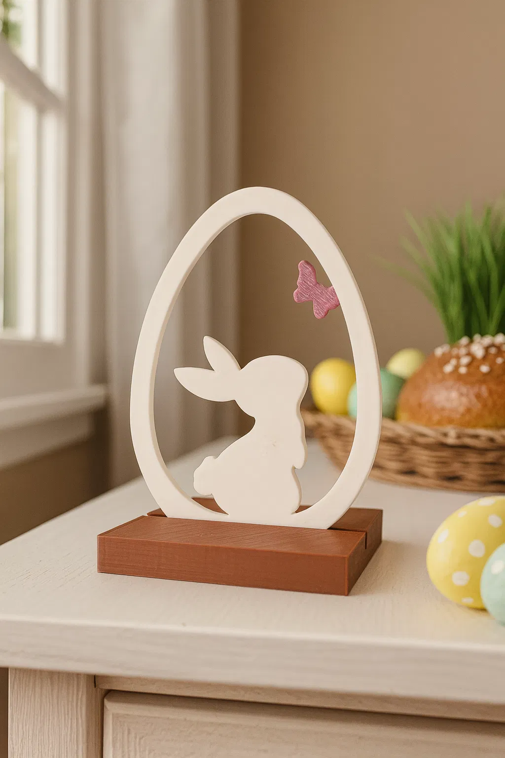 Mình làm một mẫu trang trí Phục Sinh đơn giản mà xinh: chú thỏ đang nhìn bướm. Bạn có thể đặt lên stand để trưng bày nổi bật hơn. Rất mong nhận được phản hồi, lượt tải, bình luận và thả tim.