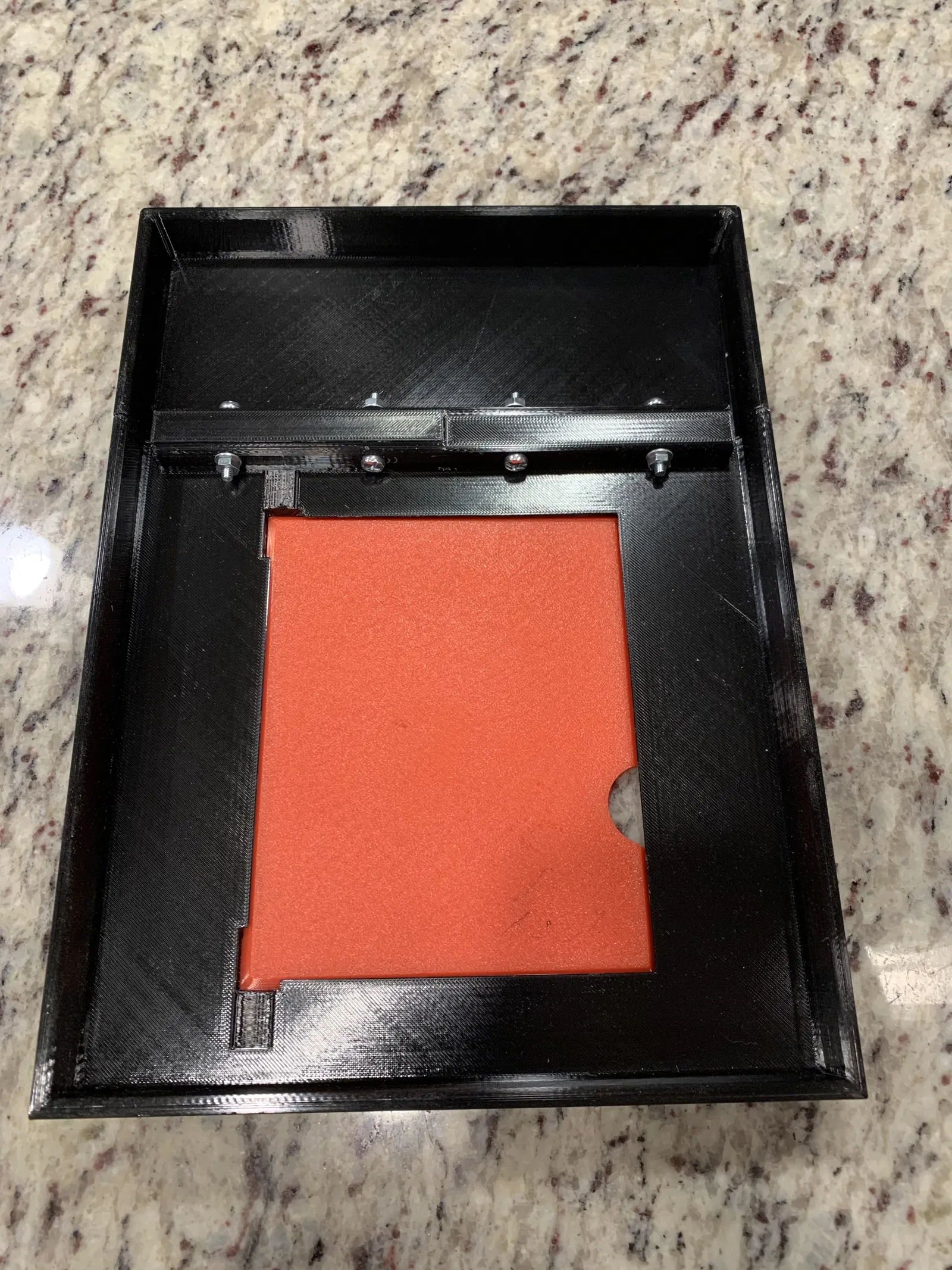 Phần bản lề ở mặt trước là một bản in riêng, trượt/bấm (slips/snaps) vào cái nắp. Mình gặp khó khi tìm hướng đặt để in phần nắp mà không cần supports, nên đây là cách mình giải quyết. Nó khít vừa vặn và khi cửa đã gắn vào thì cũng không có chỗ để tuột ra...