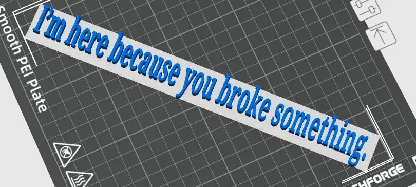 Biển có thiết kế chữ nổi 3D "I'm here because you broke something" (Tôi ở đây vì bạn lỡ làm gãy cái gì đó) với tông màu xanh dương nổi bật trên nền trắng, tạo cảm giác thu hút và dễ đọc. Nó là một phụ kiện độc đáo để đặt trên bàn làm việc, kệ sách, hoặc bất kỳ đâu bạn muốn thêm chút "muối" vào không gian chung. Hãy tưởng tượng phản ứng của mọi người khi lần đầu nhìn thấy nó – chắc chắn sẽ rất thú vị!