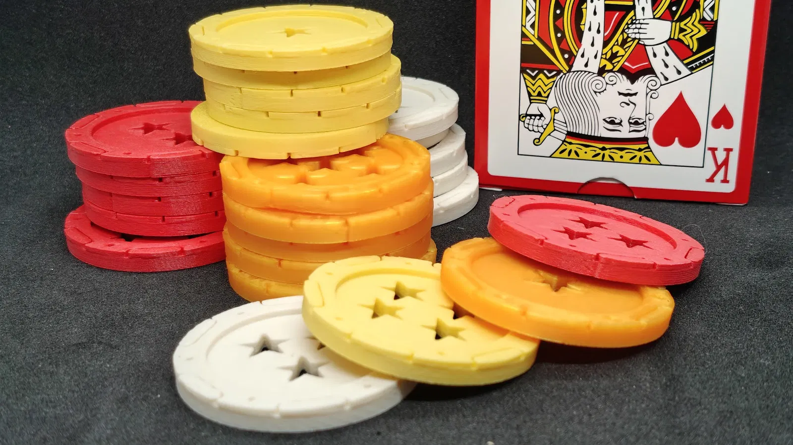 Bộ chip poker dành cho game co-operative The Gang. Chỉ cần in STL với 4 màu (trắng, vàng, cam, đỏ) và chuẩn bị thêm một bộ bài poker 52 lá tiêu chuẩn, tải luật chơi là có thể bắt đầu.