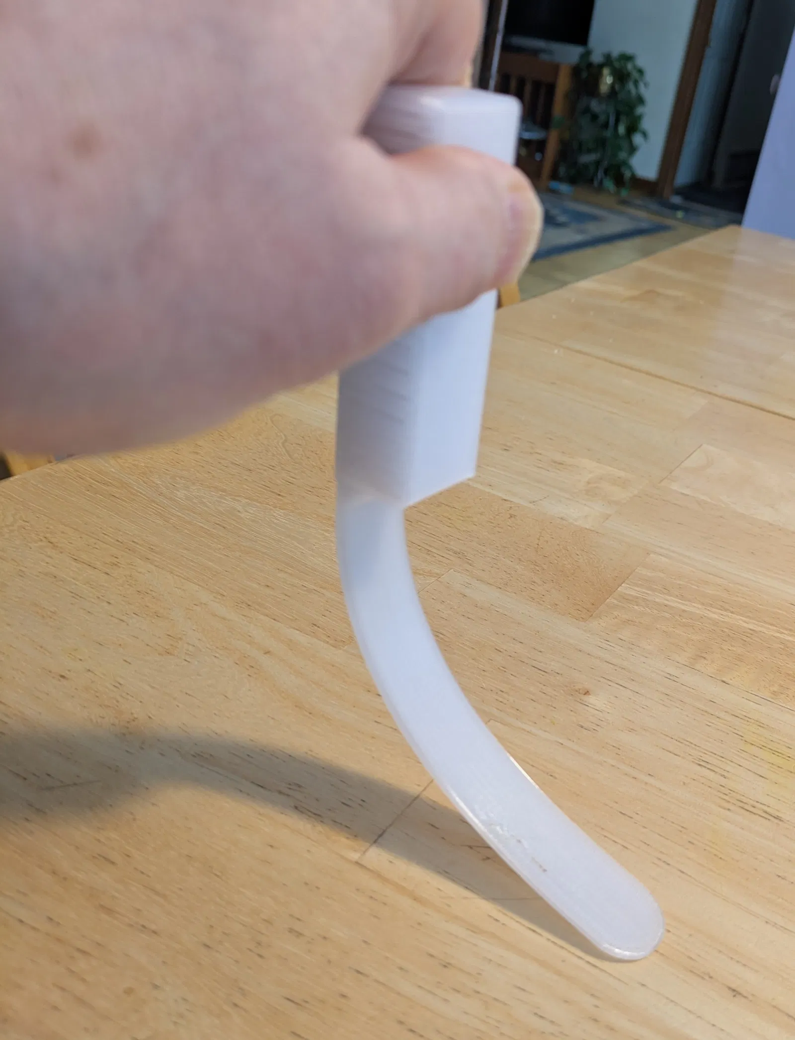 Cake Pan Spatula là dụng cụ chuyên để nạy bánh/bánh mì bị dính khuôn, hẹp và linh hoạt để ôm theo đường cong khuôn (như bundt cake) mà hạn chế làm trầy bề mặt chống dính. In PETG, infill 50%.
