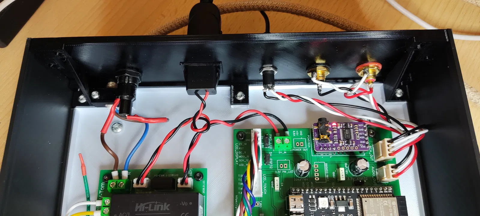 Với kích thước tổng thể rộng 220mm, cao 80mm và sâu 170mm, chiếc vỏ case này cung cấp đủ không gian để chứa các bo mạch chủ ESP32, module âm thanh PCM5102A, cùng các dây dẫn và kết nối cần thiết. Bạn có thể dễ dàng lắp đặt màn hình cảm ứng ở mặt trước, cùng với các nút điều chỉnh và cổng kết nối ở mặt sau như cổng USB, jack cắm audio, và các cổng âm thanh chất lượng cao. Đây là một sản phẩm lý tưởng cho các dự án radio internet cá nhân, thiết bị nghe nhạc số hoặc bất kỳ dự án DIY nào liên quan đến màn hình cảm ứng và ESP32.