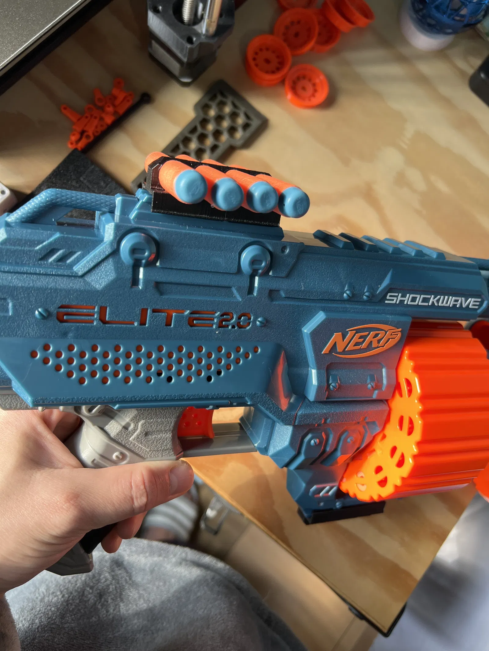 Anh em mê súng Nerf ơi, có phải mình hay bị thiếu chỗ để đạn hoặc muốn có thêm móc treo tiện lợi không? Hiểu được nỗi lòng đó, hôm nay mình giới thiệu đến anh em một món phụ kiện 3D cực kỳ hữu ích: Phụ kiện gắn thêm có lỗ (cho đạn hoặc móc treo belt) cho súng Nerf Elite 2.0 Commander và Shockwave.