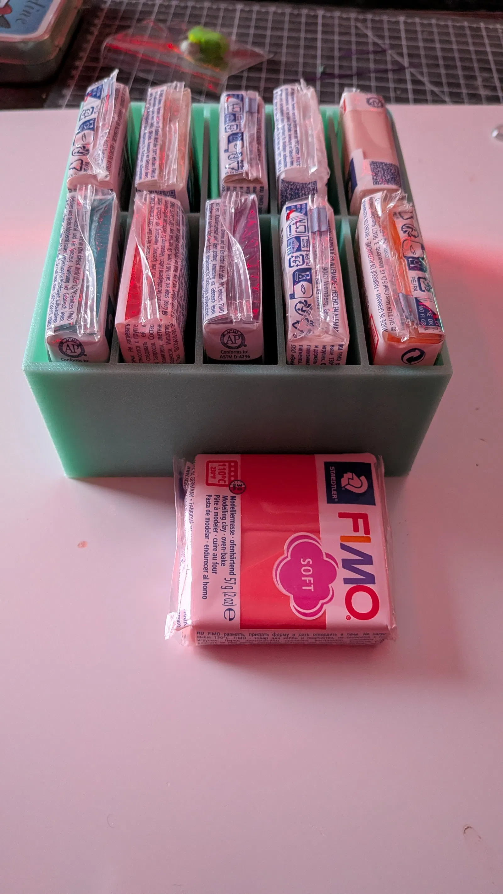 - Lưu trữ hiệu quả: Mỗi ngăn chứa vừa vặn một gói đất nặn, giúp bạn dễ dàng phân loại theo màu sắc hoặc loại.