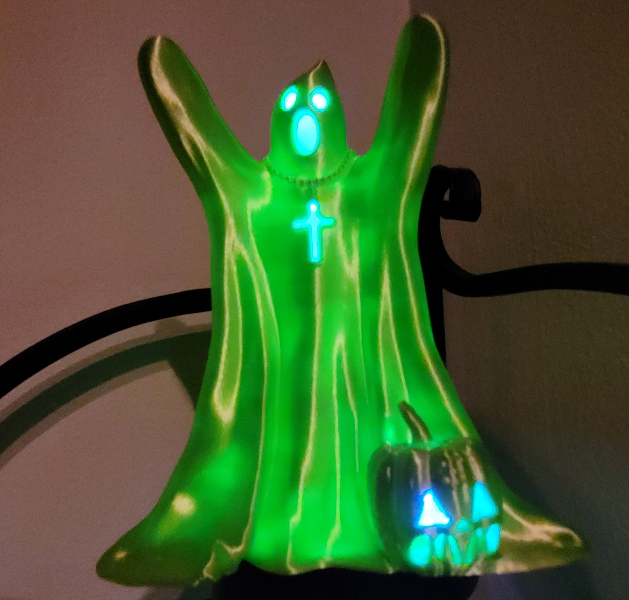 Một con ma và bí ngô cho bộ sưu tập Halloween của bạn. Đặt một ánh sáng bên trong cho một bất ngờ phát sáng!