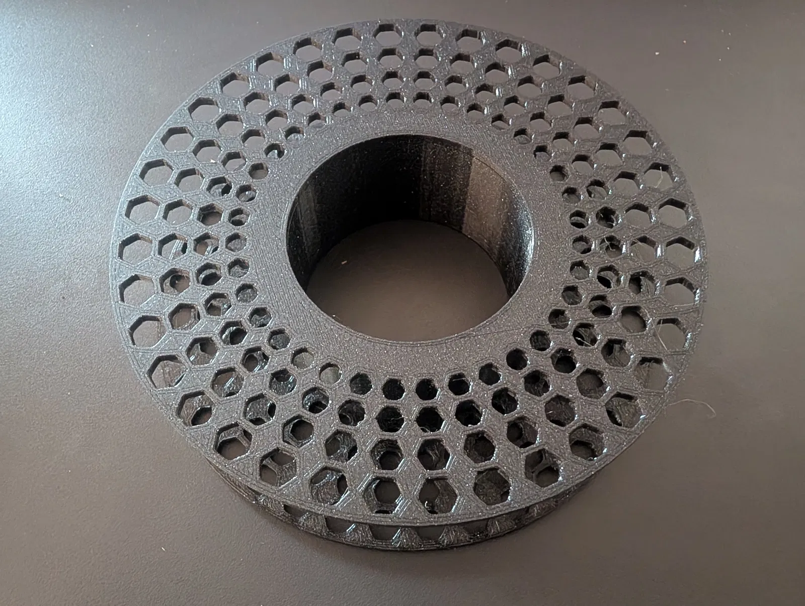 Cuộn filament nhỏ dành cho mẫu thử hoặc phần filament dư. Kích thước: lỗ 50mm, đường kính ngoài 120mm, rộng 20mm; kèm vòng mở rộng 10mm. Thiết kế threaded giúp tháo lắp dễ, in PETG 0.2mm layer, 15% infill.