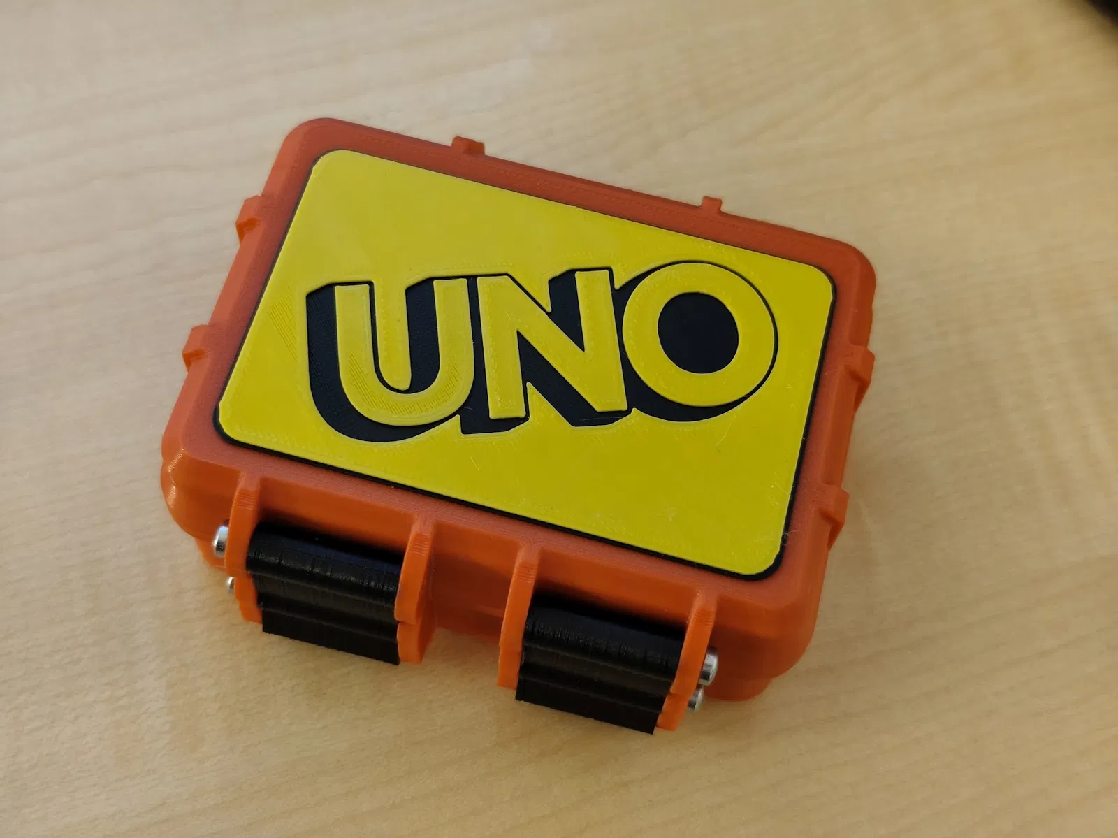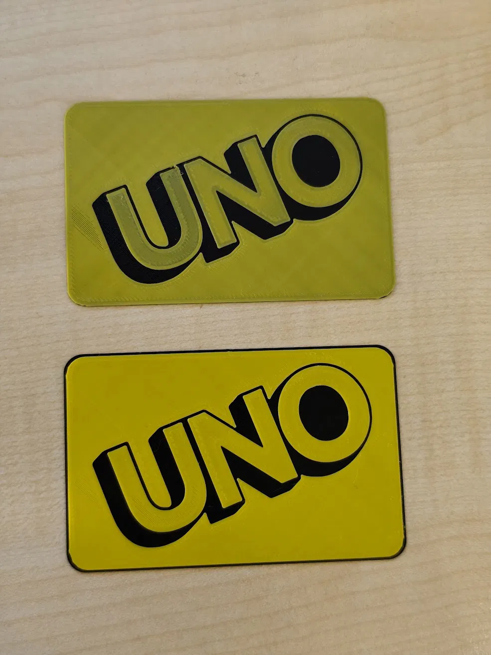 Logo UNO để dán lên hộp đựng bài nếu bạn dùng máy in thường. Chỉ cần đổi màu filament 1 lần: bản mỏng 4 layer đổi sau layer 2, bản dày 6 layer đổi giữa layer 2–3, màu lên nổi và rực hơn.