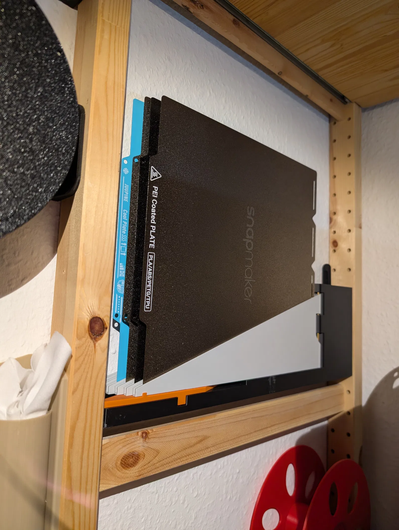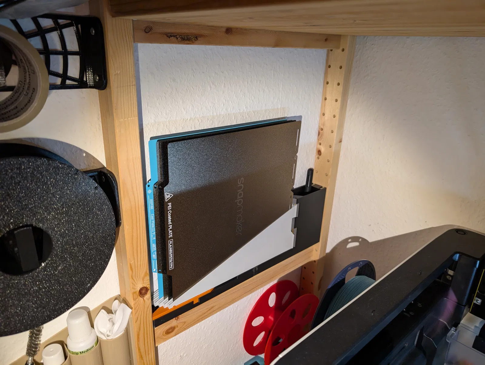 Rất hợp cho workshop gọn gàng và những ai có nhiều build plate muốn để sẵn trong tầm tay mà vẫn tiết kiệm diện tích.