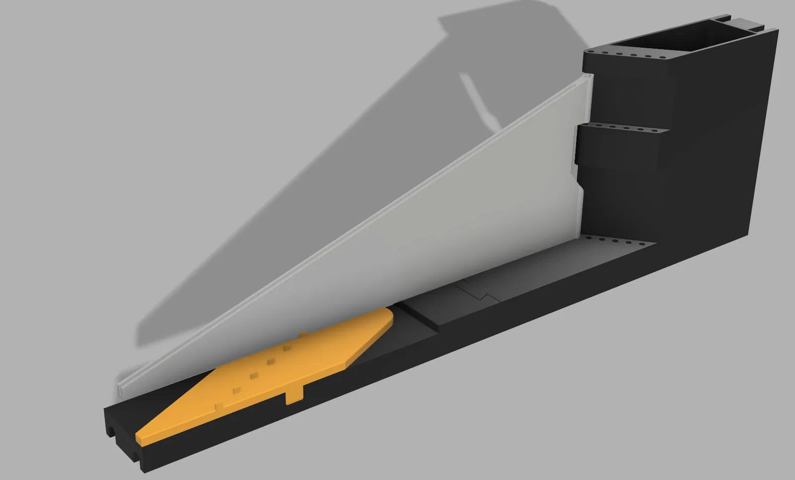 Các tấm được treo trên tay đòn xoay với trục Ø 3 mm. Khi đóng lại, chúng nằm sát nhau cực kỳ gọn. Khi mở ra, các tấm xòe ra và cầm từng cái rất dễ. Kết quả: chắc chắn, gọn, cơ khí đơn giản.
