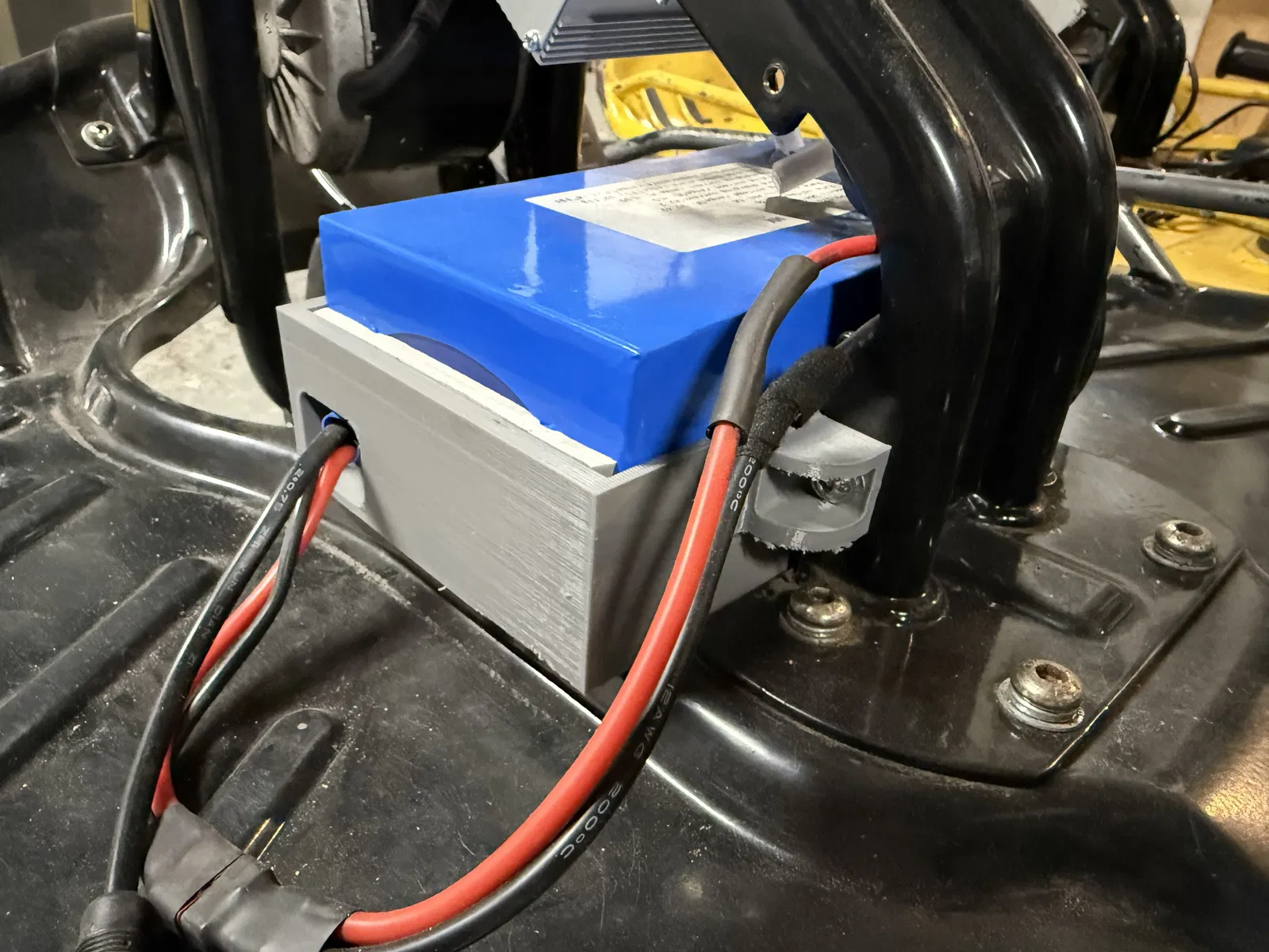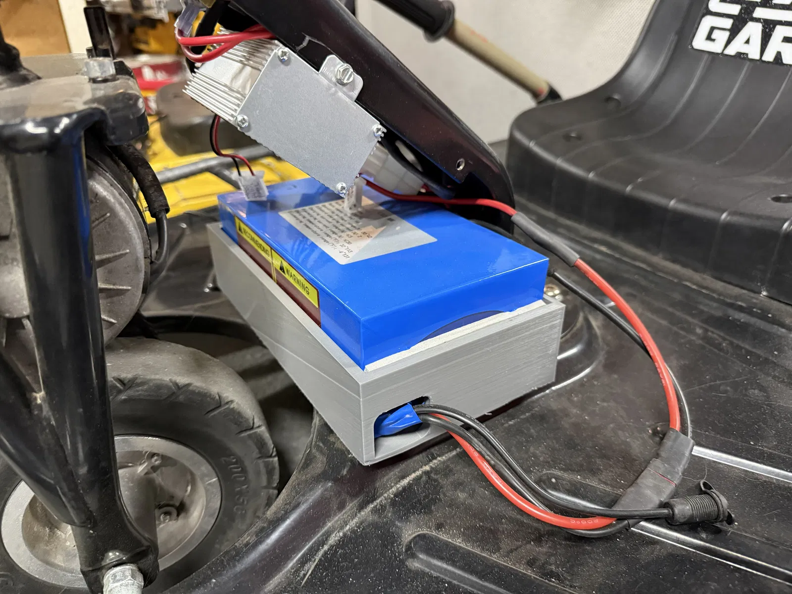 Khay pin in 3D tuỳ chỉnh này được thiết kế riêng để cố định chắc chắn pin nâng cấp 14Ah trên Razor Crazy Cart. Nó tạo ra một bệ đỡ gọn gàng, ổn định, giúp pin nằm vững trong lúc chạy “gắt” và drift mạnh.