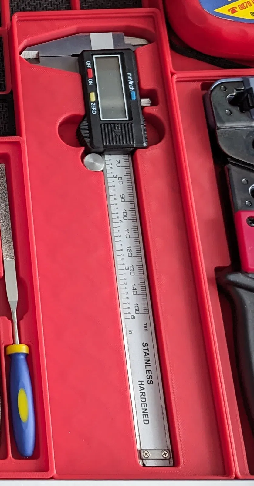 Đây là một cái khay để giữ cây thước kẹp Digital Calipers giá rẻ của mình trong ngăn kéo, dùng hệ Gridfinity. Mình mua cái này trên Amazon năm 2018 và giờ hình như không còn bán nữa. Nhưng có thể vẫn xài được cho những mẫu khác.