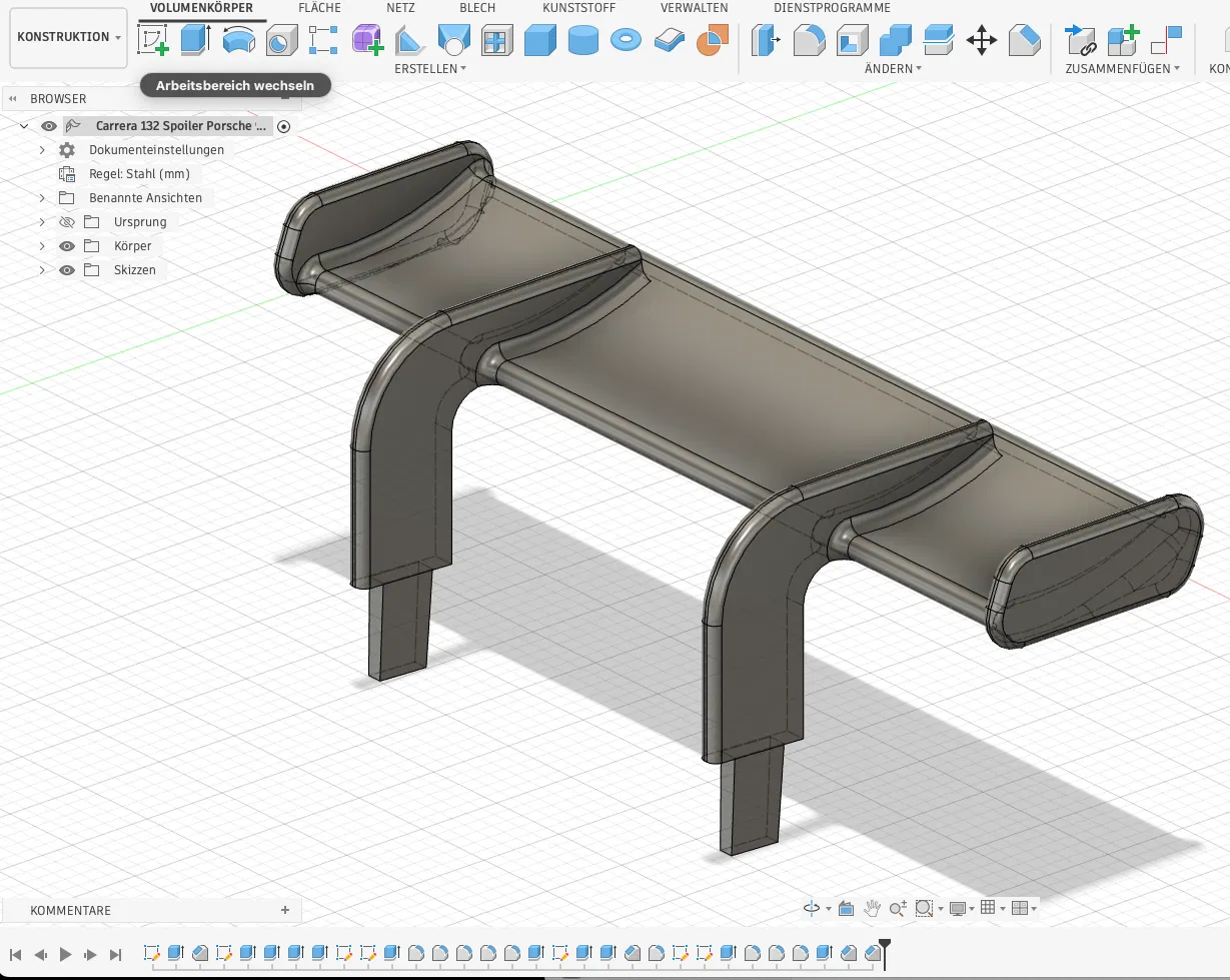 Mẫu này về hình dáng không giống y hệt cánh gió zin của Carrera và cũng không mảnh/“filigree” bằng. Mình thiết kế để nó—đặc biệt là ở các ngàm/đầu cắm (connectors)—đủ chắc cho in 3D, hạn chế gãy vỡ khi thao tác.