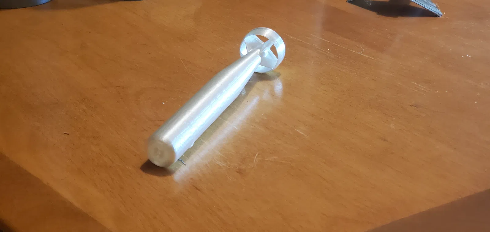 Mình in “tên lửa” dựng đứng trên phần chóp đuôi (tail cone) và các cánh (fins), không dùng brim. Ở tỉ lệ 1:24 thì chiều dài rơi vào khoảng 5 inch.