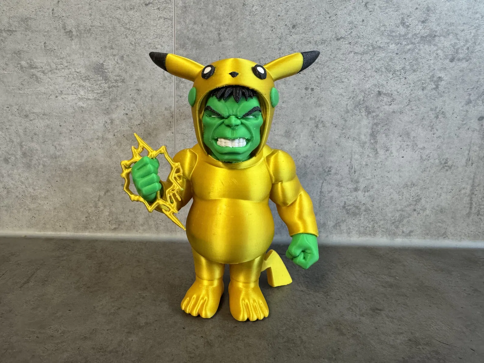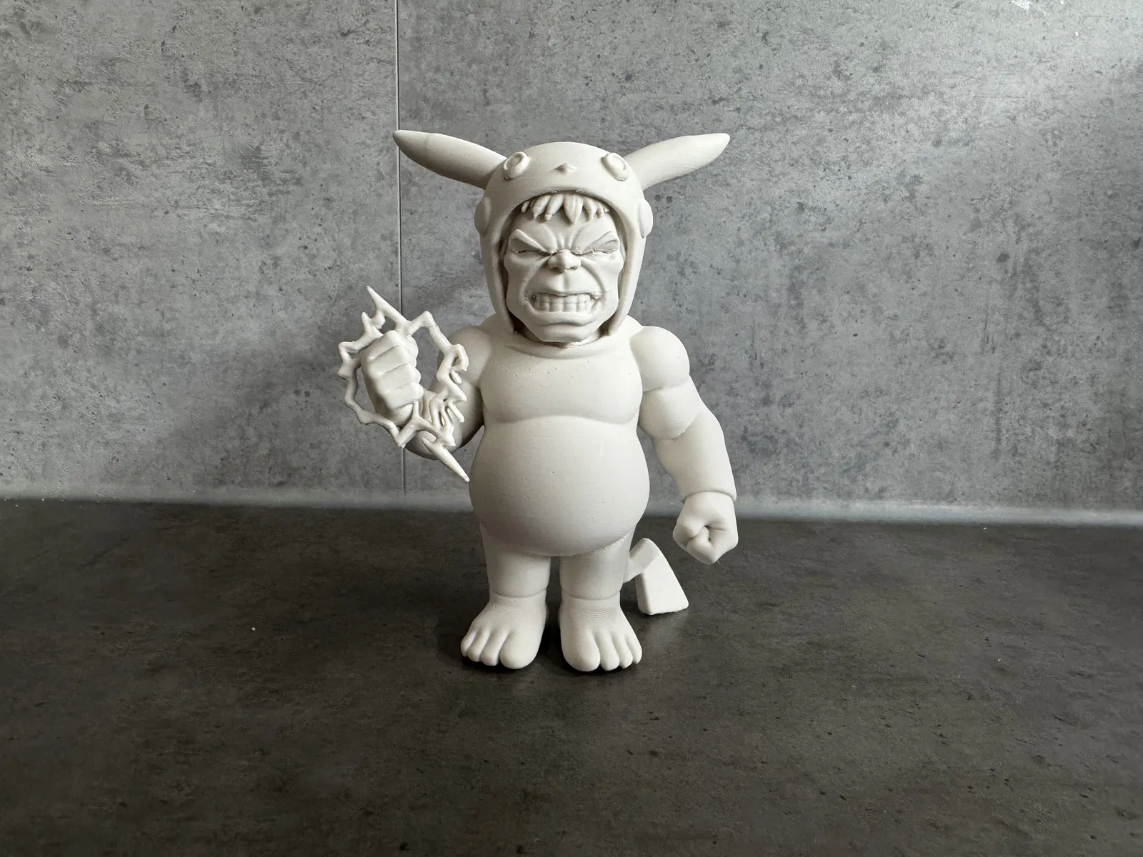 Hulkachu là mô hình figure crossover vui nhộn: dáng Hulk nhưng mang chi tiết gợi nhớ Pikachu. Phong cách cartoon, bề mặt mượt, hợp trưng bày bàn/kệ. Gợi ý in PLA, layer height 0.2 mm, supports tùy hướng.