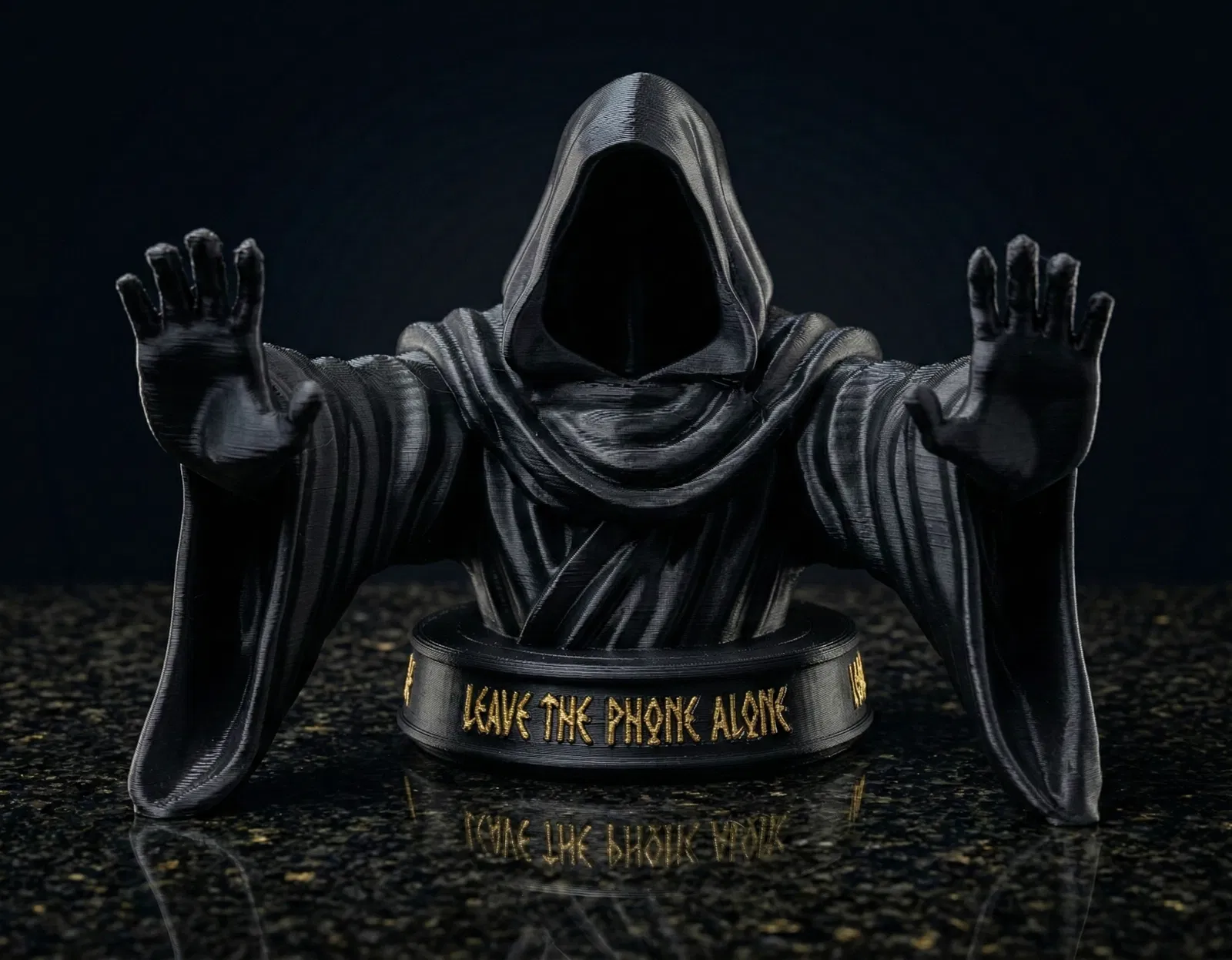 Bạn có bao giờ đang làm việc hoặc chuẩn bị ngủ mà tay cứ vô thức với lấy điện thoại không? Digital Detox Wraith này sinh ra để “chặn” thói quen đó. Bóng ma trùm hood này vừa là một cái phone stand tiện dụng, vừa là lời nhắc trực quan cực mạnh để mình tập trung vào những thứ thật sự quan trọng.