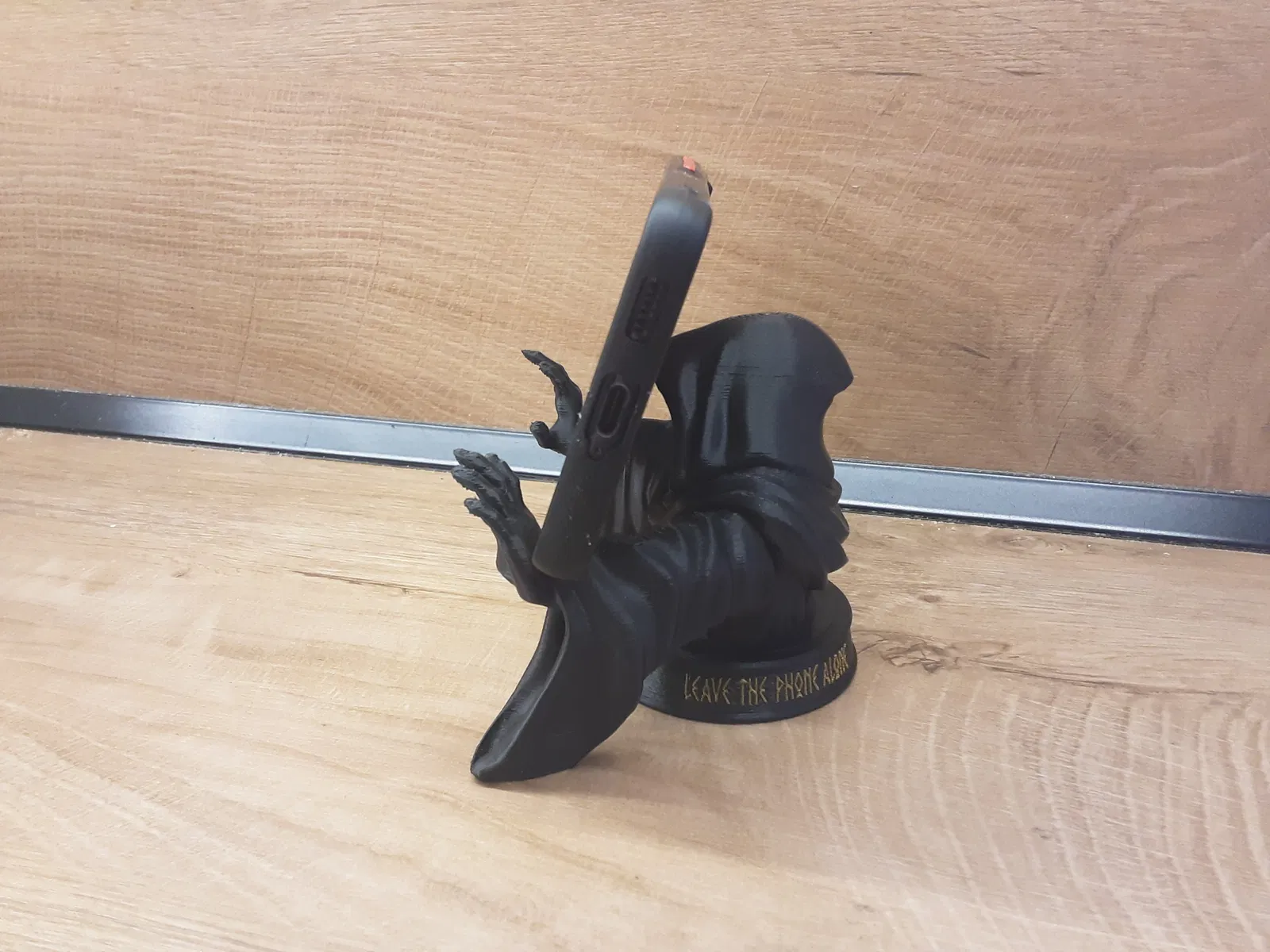 Digital Detox Wraith là phone stand “nhắc nhở” cai nghiện điện thoại, giúp tập trung khi làm việc hoặc trước giờ ngủ. Thiết kế 100% không cần support, hợp in PLA đen mờ, chữ dập nổi dễ tô nổi bật.