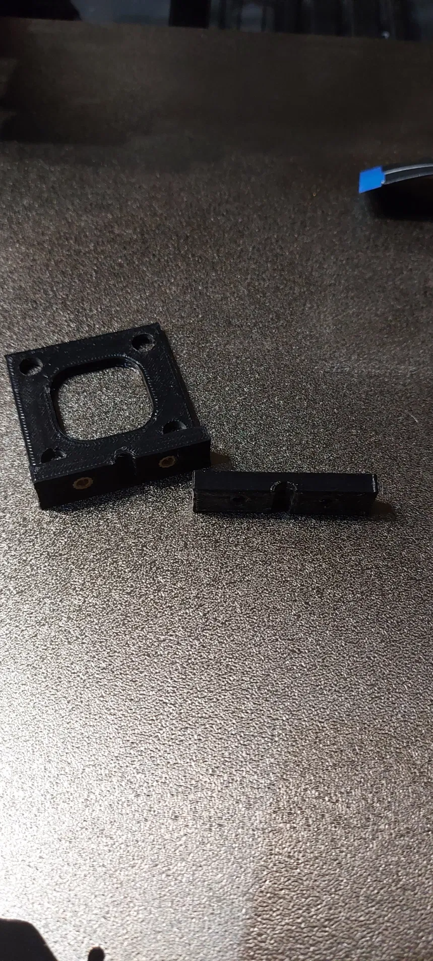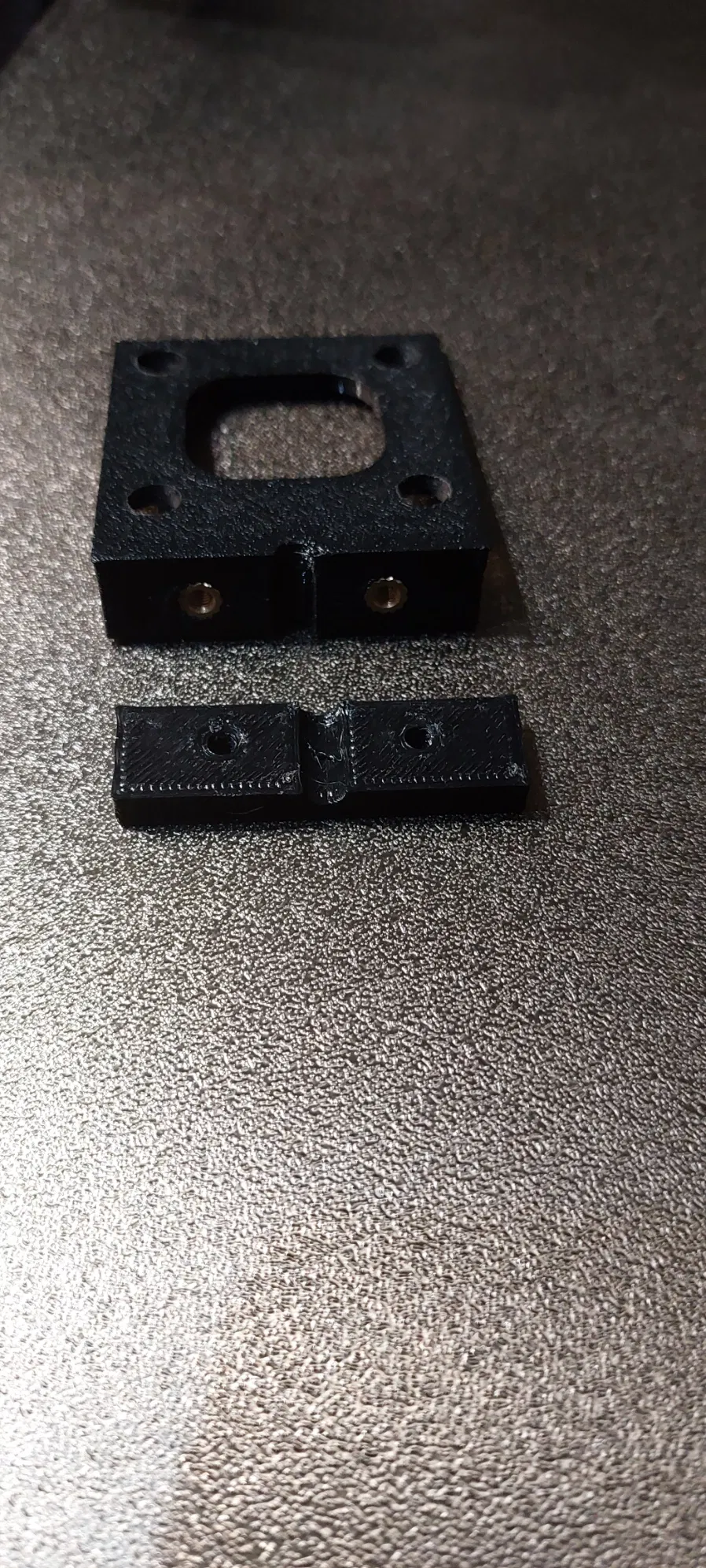 Có 2 mẫu plate: một mẫu để taro ren vít M3 (mẫu này dùng để gắn lên trên các con ốc lục giác, chừa một khe nhỏ để motor thông gió) và một mẫu giống zin (các con ốc lục giác của motor sẽ nằm lọt bên trong chi tiết).