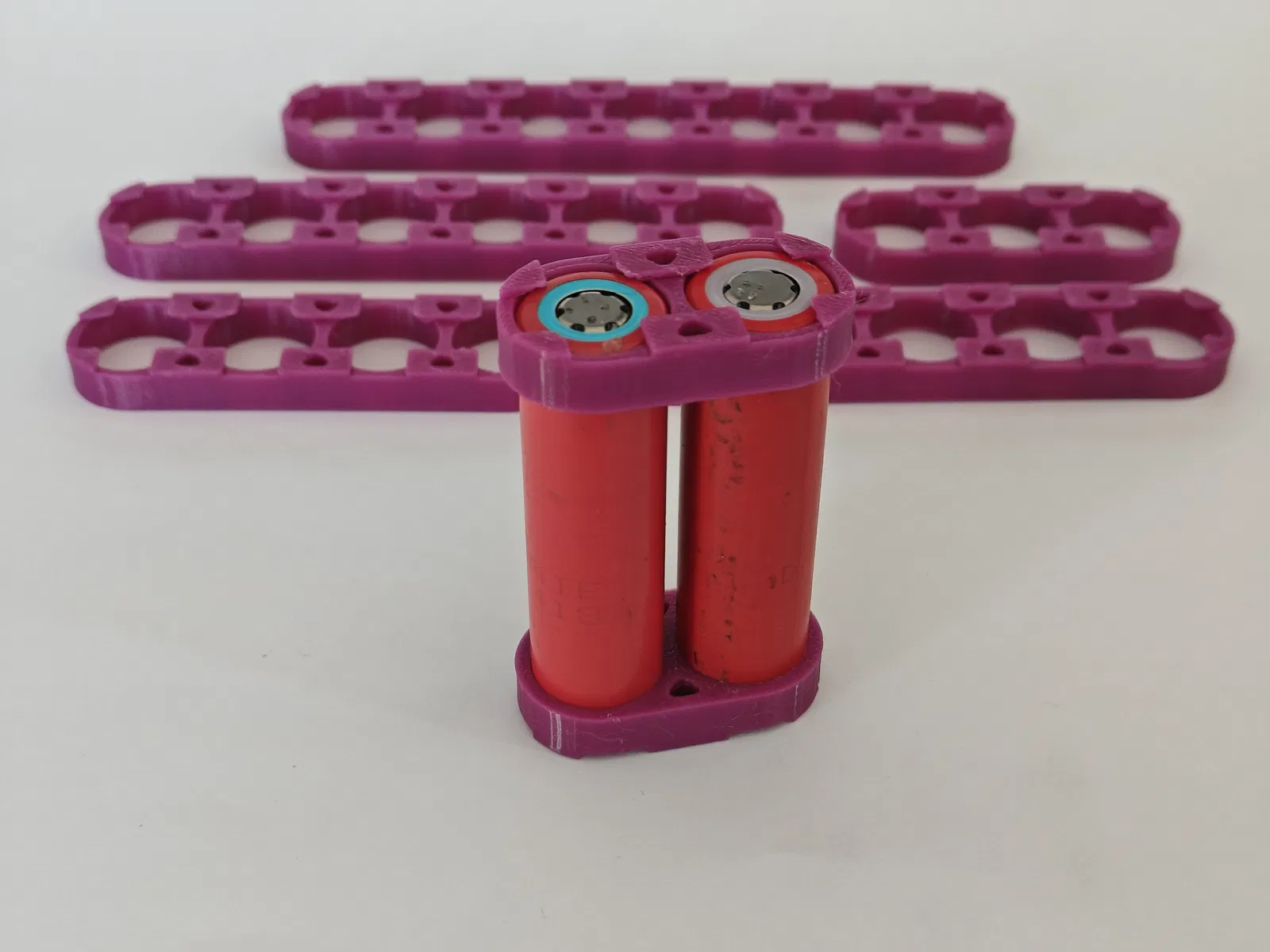Material: Rất khuyến nghị PETG, ABS, hoặc ASA. Pack lithium-ion có thể sinh nhiệt, còn PLA có thể bị cong/vênh khi chịu tải hoặc trong quá trình spot-welding.