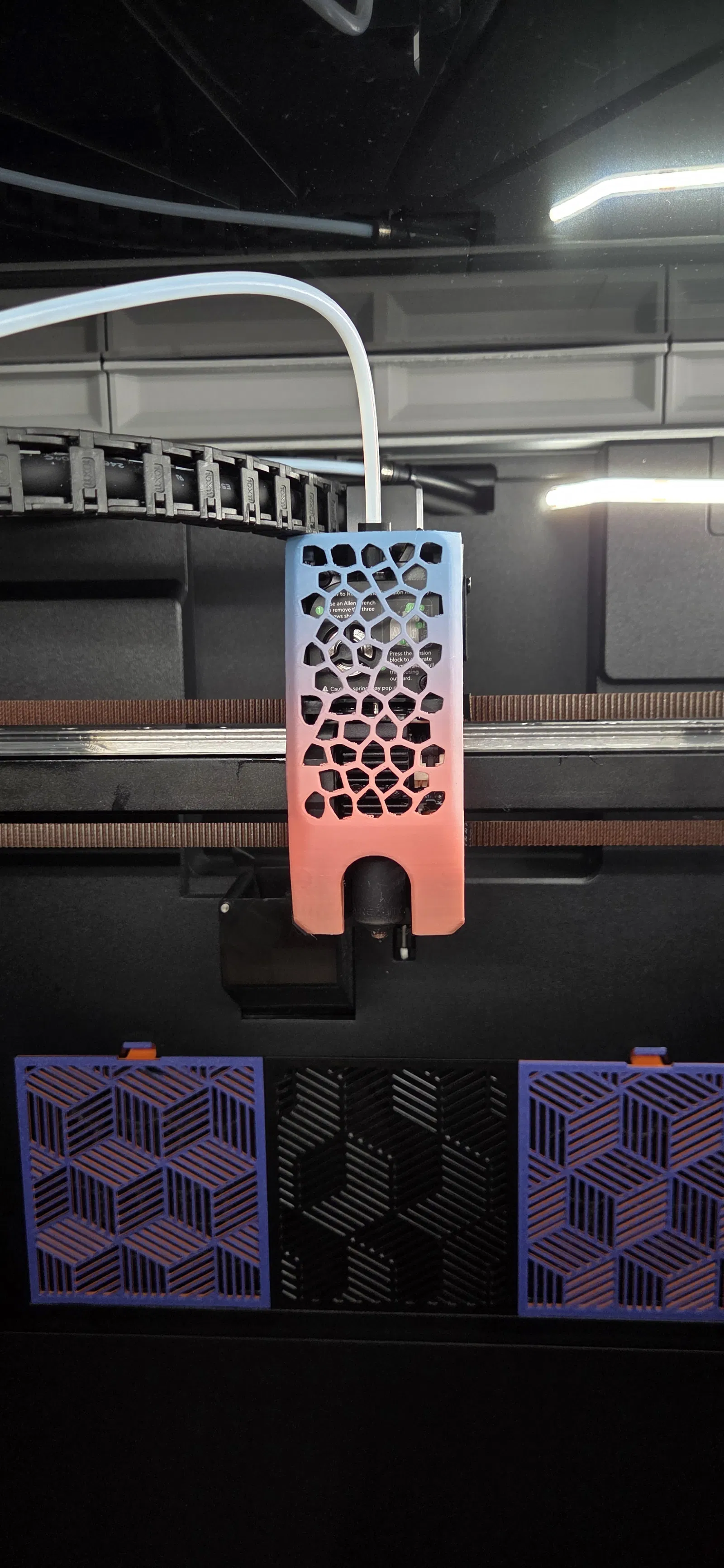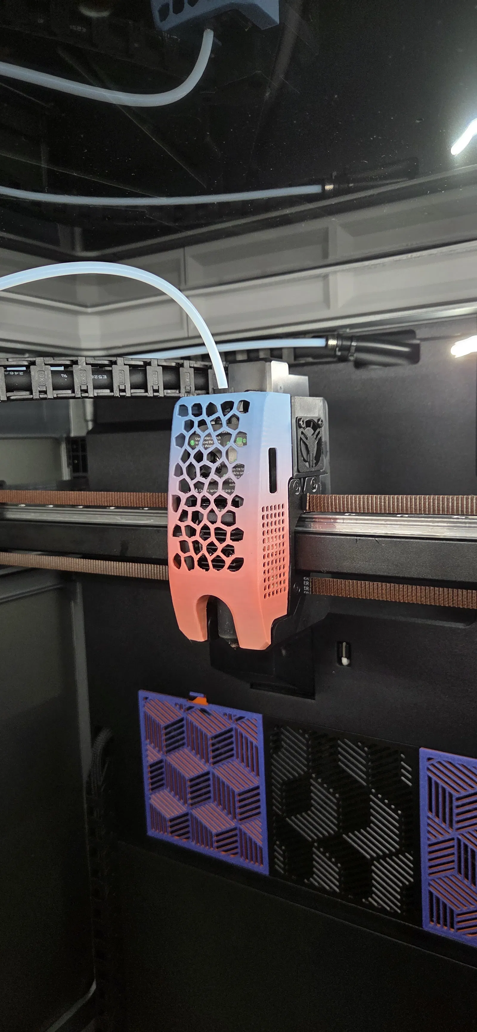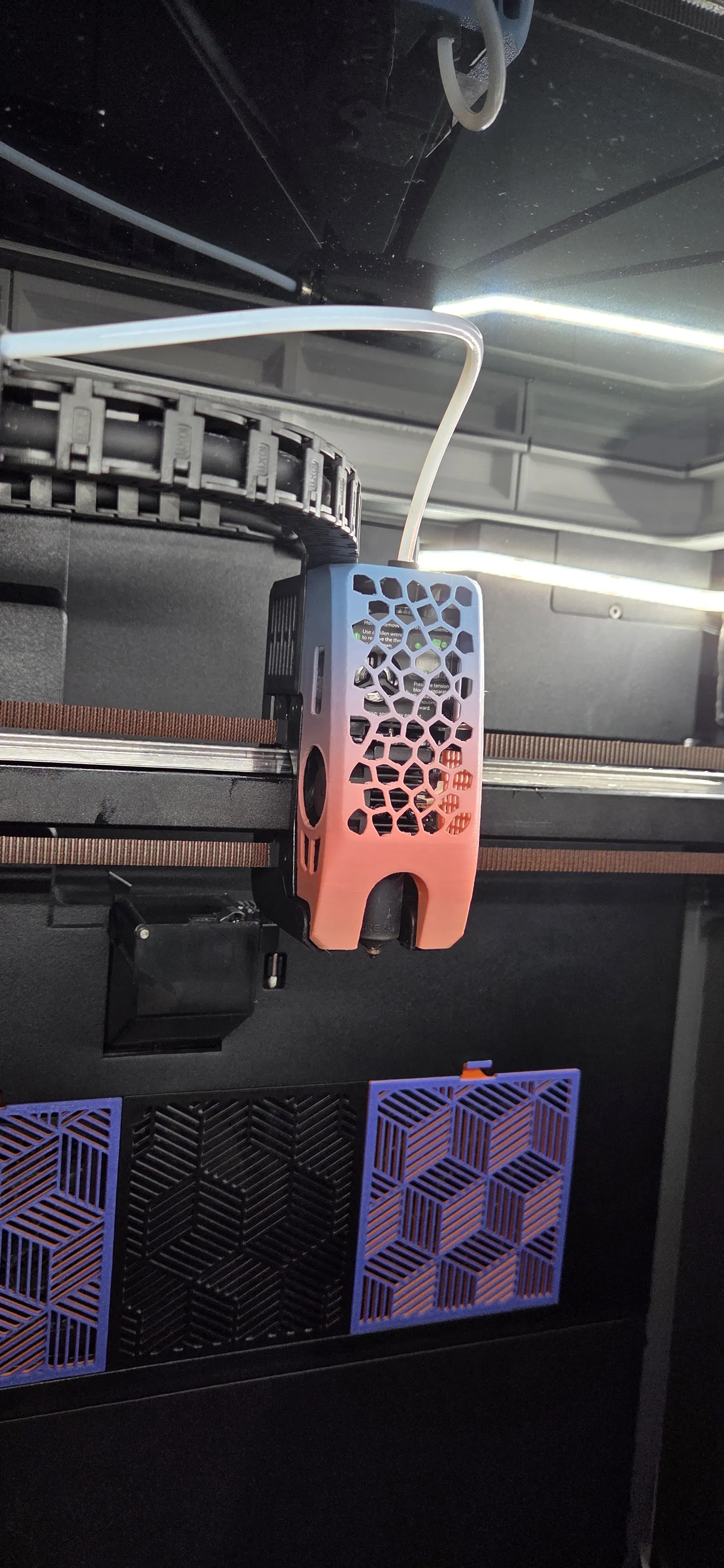 Ốp che toolhead phong cách Voronoi cho Creality K2/K2Pro/K2Plus, chỉ mang tính thẩm mỹ. Khuyên in PETG/ABS/ASA cho bền; tác giả in bằng Creality Hyper PLA Rainbow và dùng organic tree supports.