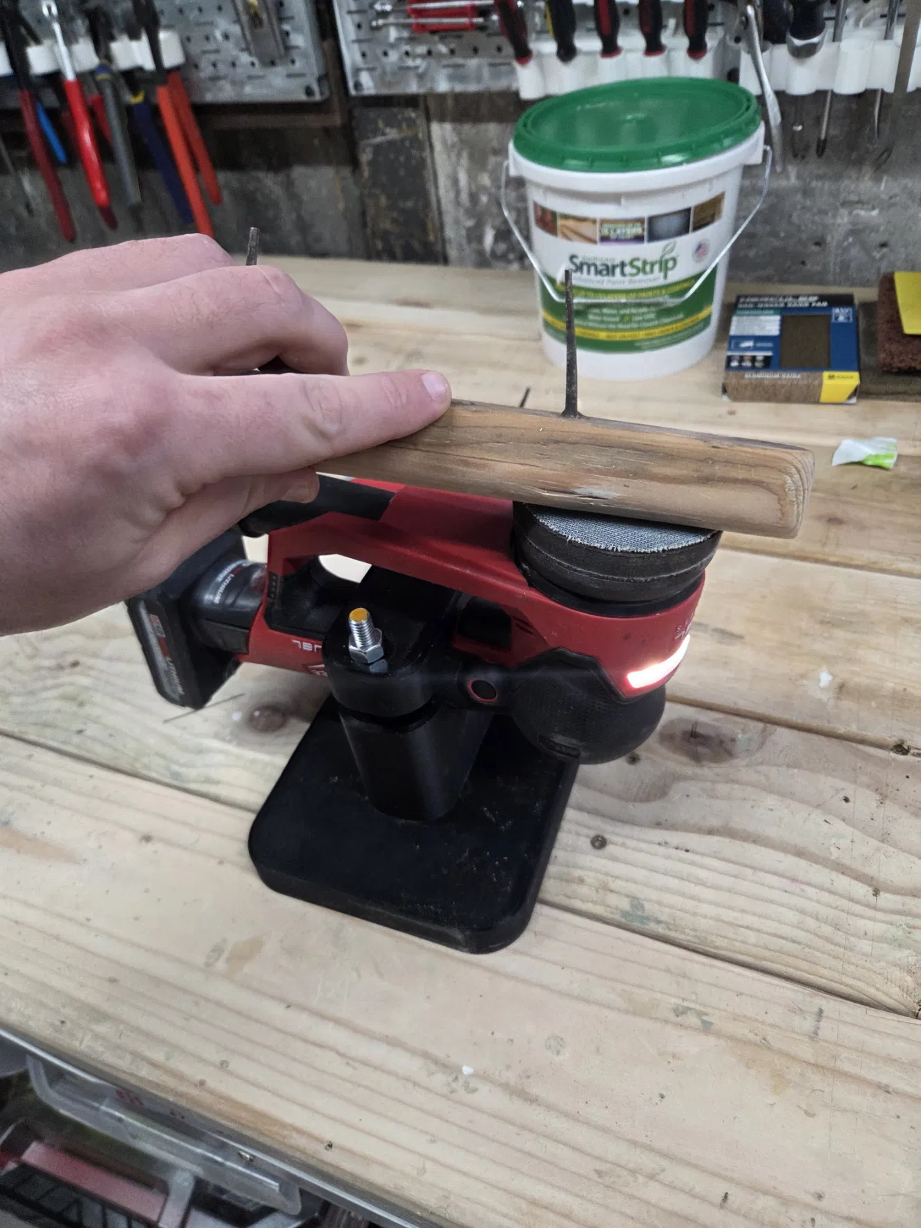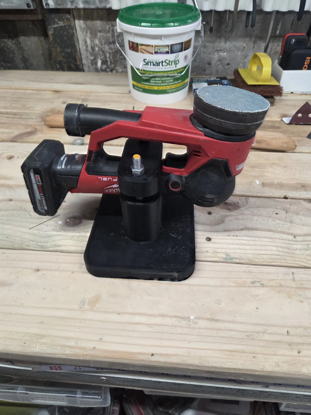 Đây là một cái đế để gắn phần tay cầm của máy chà nhám M12 và giữ các chi tiết nhỏ để chà nhám. Nó cũng dùng được với các tool M12 khác và những tool có tay cầm tương tự.