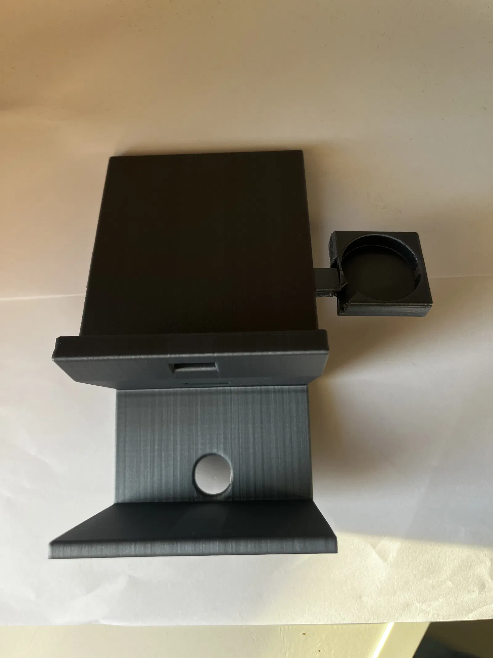 Chào cô chú anh chị em ơi, hôm nay mình giới thiệu đến mọi người một sản phẩm cực kỳ tiện lợi mà mình tự làm bằng máy in 3D nha: Đế điện thoại kèm chỗ để đồng hồ thông minh. Sản phẩm này sinh ra là để giải quyết nỗi lo về việc sạc pin và sắp xếp gọn gàng các thiết bị công nghệ cá nhân. Không còn cảnh dây sạc lằng nhằng hay để lung tung nữa, giờ đây chiếc điện thoại và đồng hồ của mình sẽ luôn ở đúng vị trí, sẵn sàng để sử dụng.