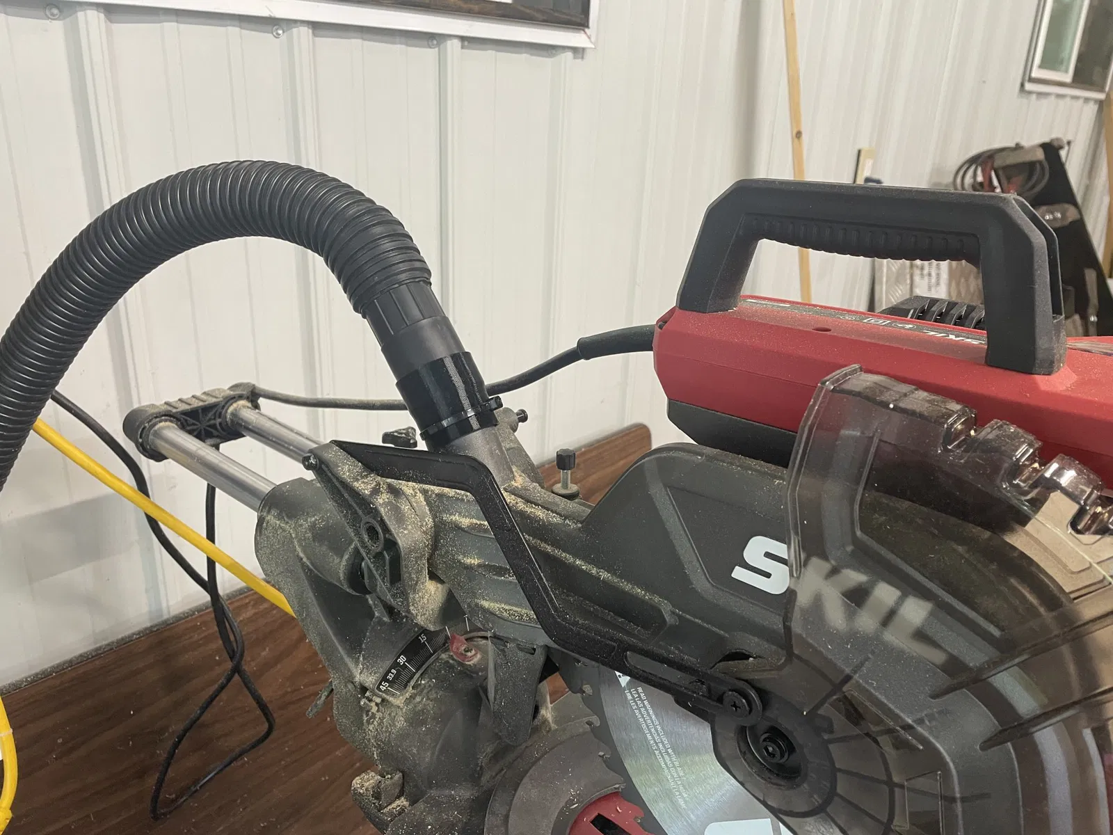 Tôi đã in cái này bằng Amazon Basics TPU và tôi nghĩ nó đã hoàn thành rất tốt! Tôi đã thêm một cái zip tie vào bộ chuyển đổi để ngăn trọng lượng của ống hút kéo nó ra. Nó vừa lỏng hơn một chút trên Skil nhưng lại vừa khít trên Dewalt.