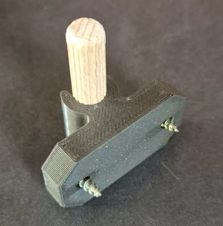 Chiếc kẹp ghim gỗ 3D này được thiết kế để tương thích với các loại chốt gỗ thông dụng, dễ dàng tìm mua trên thị trường. Sau khi in xong, bạn chỉ cần lồng chốt gỗ vào, sau đó dùng 2 con vít để cố định bộ phận này lên khung hoặc cạnh tủ. Phần kẹp nhựa sẽ ôm lấy cạnh cánh tủ, giữ cho nó ở đúng vị trí mong muốn. Quá trình này không chỉ nhanh chóng mà còn đảm bảo độ chính xác cao, giúp công việc lắp đặt nội thất trở nên đơn giản hơn bao giờ hết.