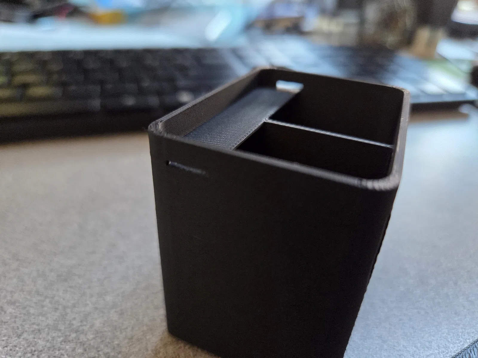 Model gốc không bù cho phần chênh lệch chiều cao của các chân, nên mình rút ngắn model lại để phần nắp giờ có thể bấm khép kín (snap shut).